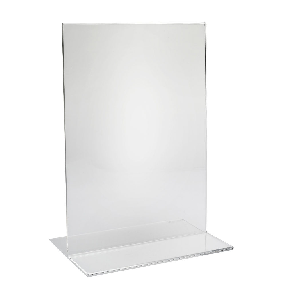 Praktische dubbelzijdige standaards voor informatiefolders e.a op een tafel, balie, kasten, vitrines etc..