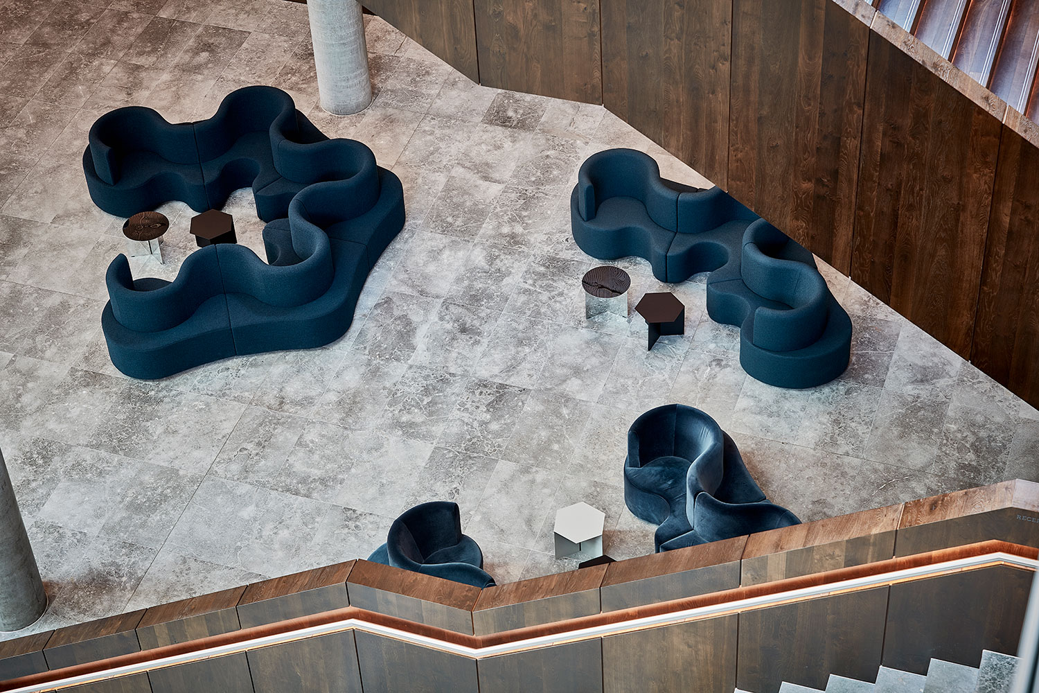 Cloverleaf is een comfortabel, modulair sofasysteem dat een beeldhouwkundig statement creëert in elke openbare ruimte.