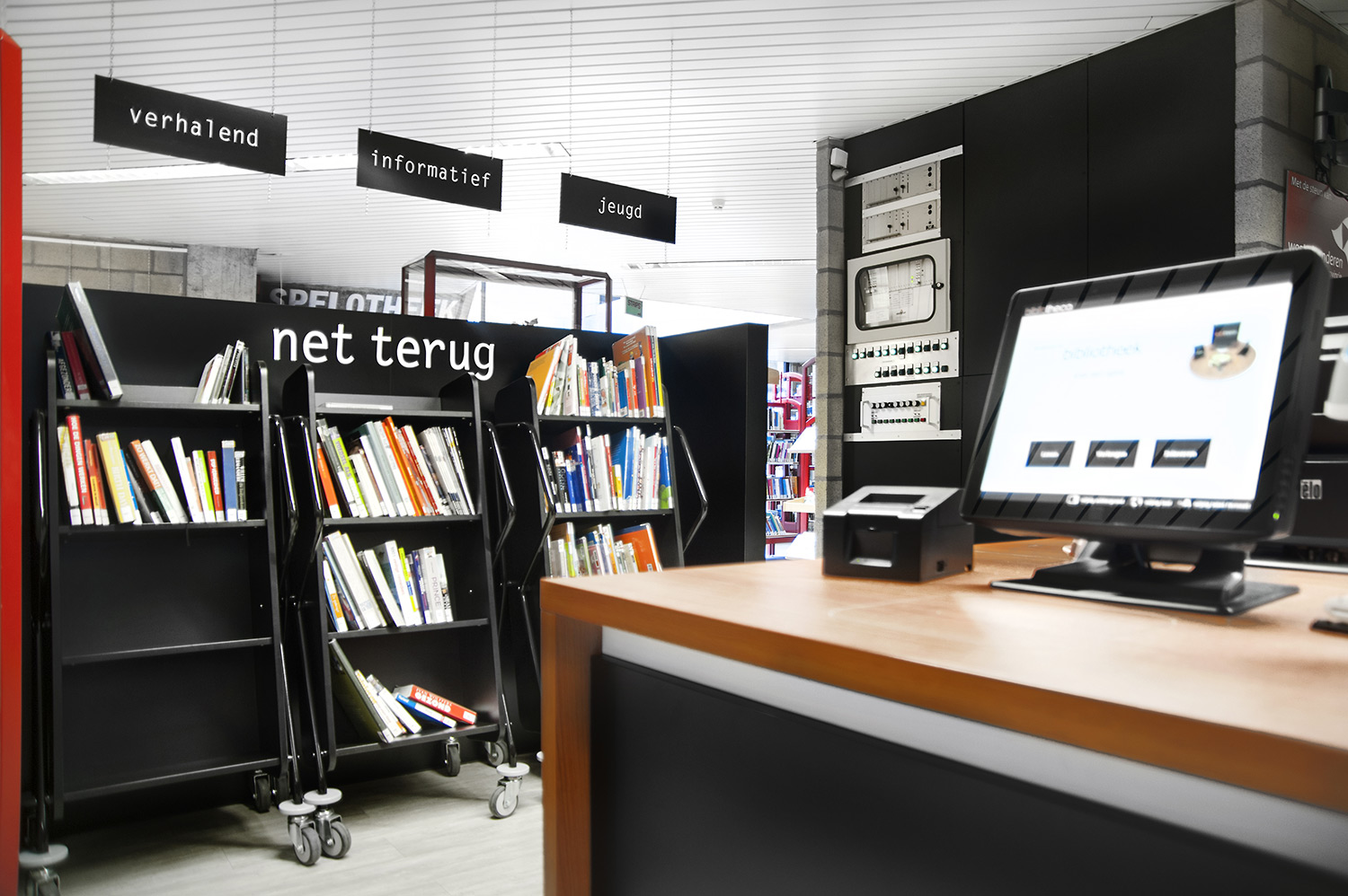 Het ontwerp van de boekenwagen zorgt voor een veilige opslag van media en biedt daarnaast een goed overzicht van de boeken die al op de kar geplaatst zijn.
