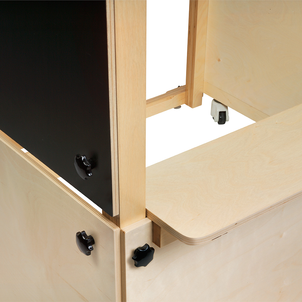 Cubik bestaat uit een kader en enkele wandelementen vervaardigd uit multiplex of van zwarte laminaat met schrijf- /magneetfunctie.