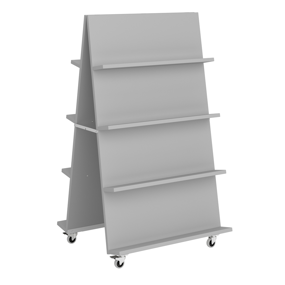 Verschillende mediaformaten kunnen op deze display gepresenteerd worden dankzij de verstelbare planken. Gebruik 3 of 4 planken aan elke zijde. Ideaal in open ruimtes of entree zones waar kleinere displays vaak in verdwijnen.