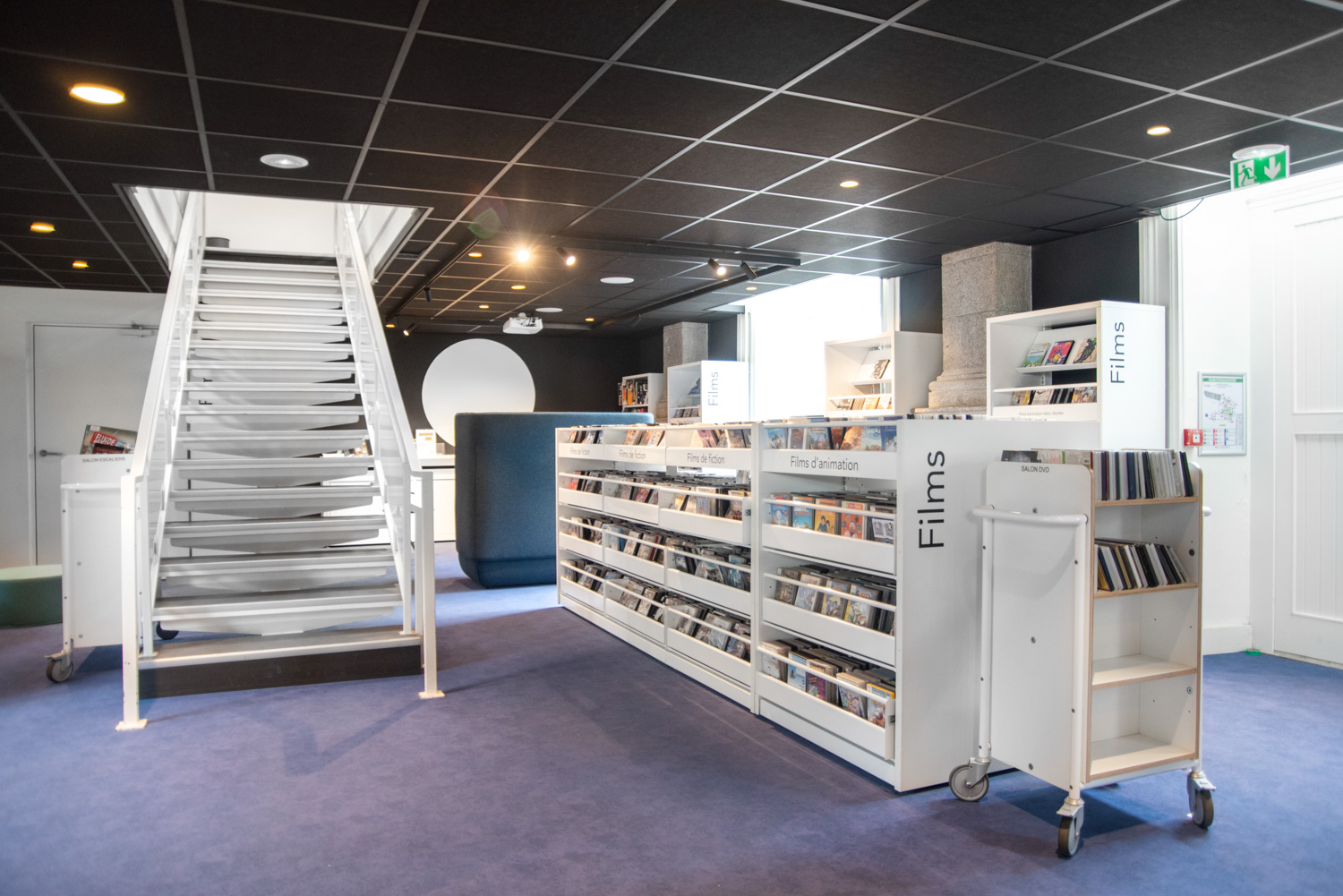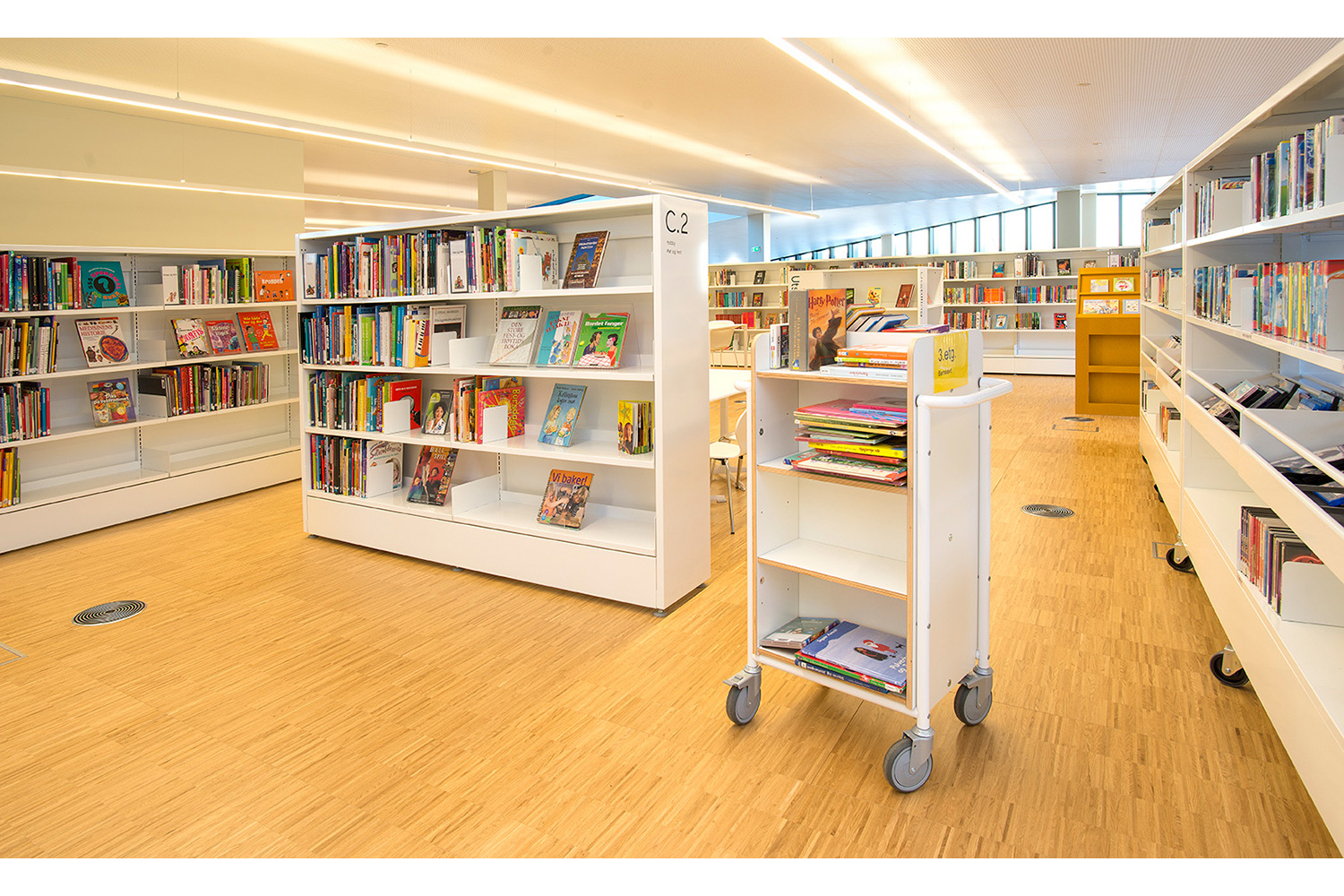We gebruiken gelamineerd berkenmultiplex - hier met zichtbare randen - om zowel een duurzaam oppervlak als een duurzame constructie te creëren. Perfect voor de meest veeleisende bibliotheekomgevingen!