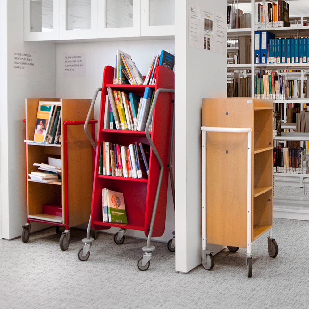 Deze boekenwagen kan ook gebruikt worden als klein, verrijdbaar boekenrekje.