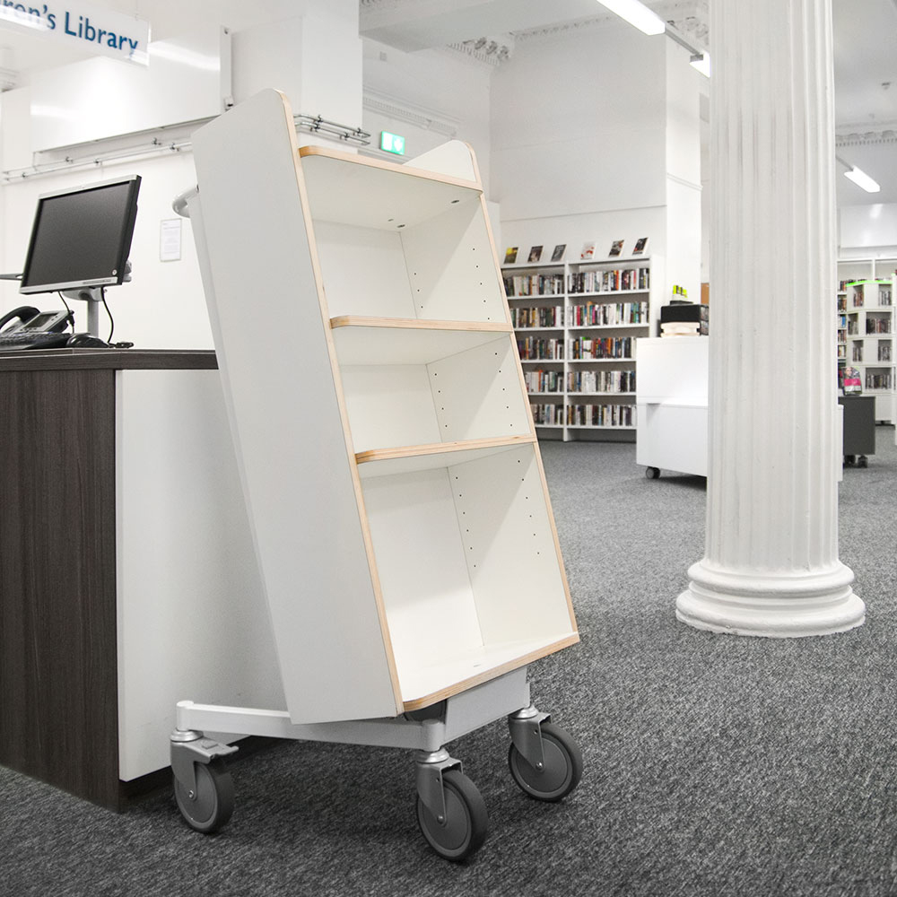 Het onwerp van de boekenwagen zorgt voor een veilige opslag van media en daarnaast biedt hij een goed overzicht van de boeken.