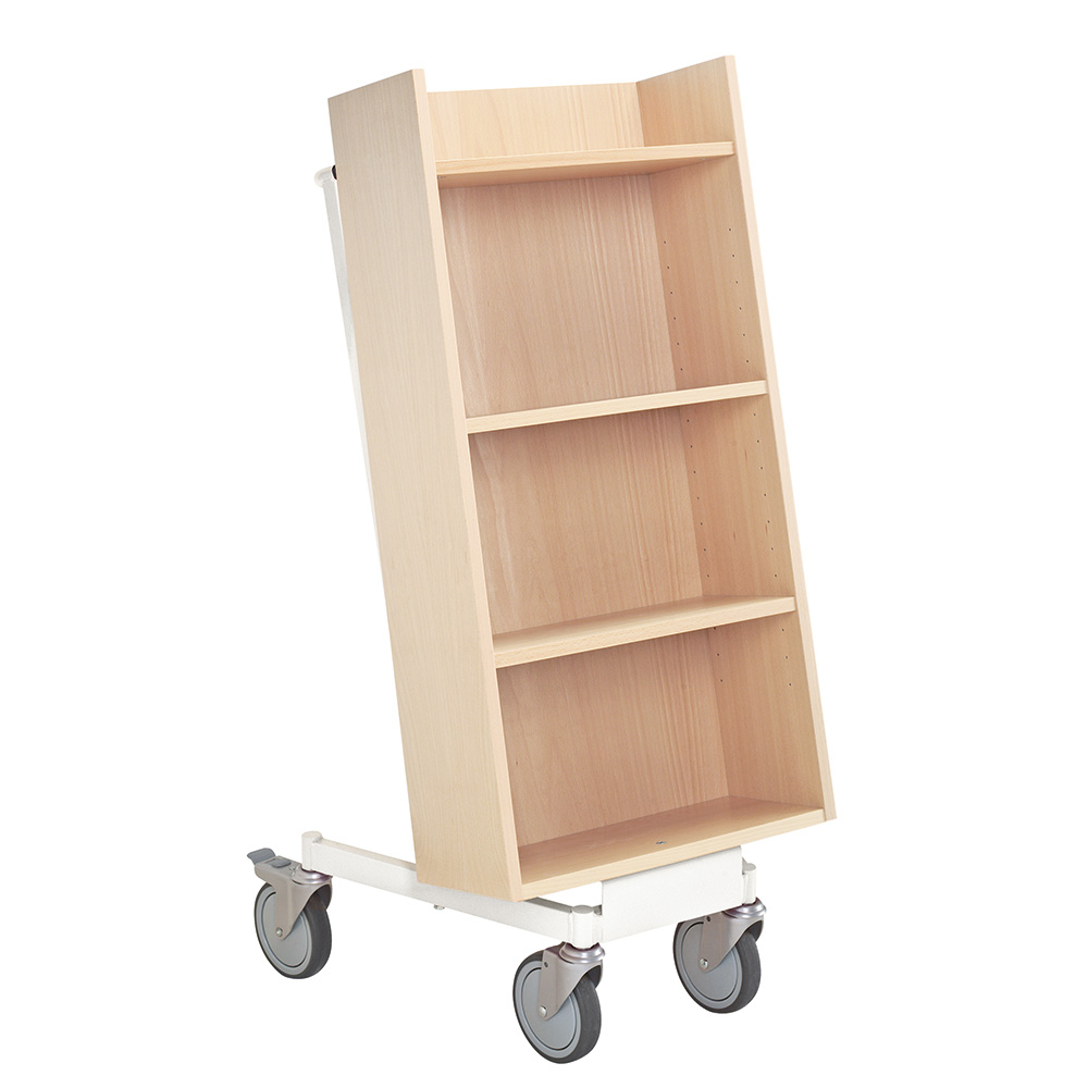 Gebruiksvriendelijke, enkelzijdige boekenwagen met 4 legplanken. De 2 middelste planken zijn verstelbaar.
