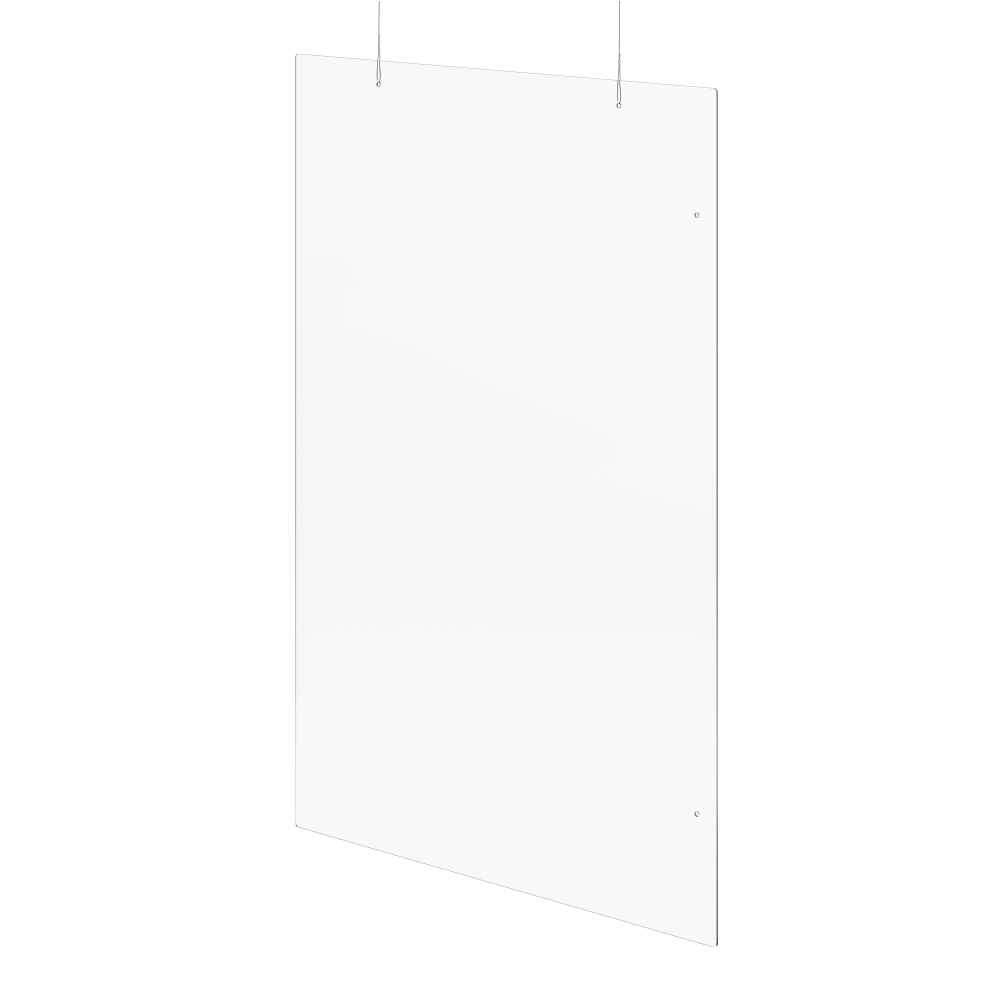 Hangend scherm voor hygiënebescherming in een elegant ontwerp van 3mm dik acryl met 2 x 2,5m ophangdraad.