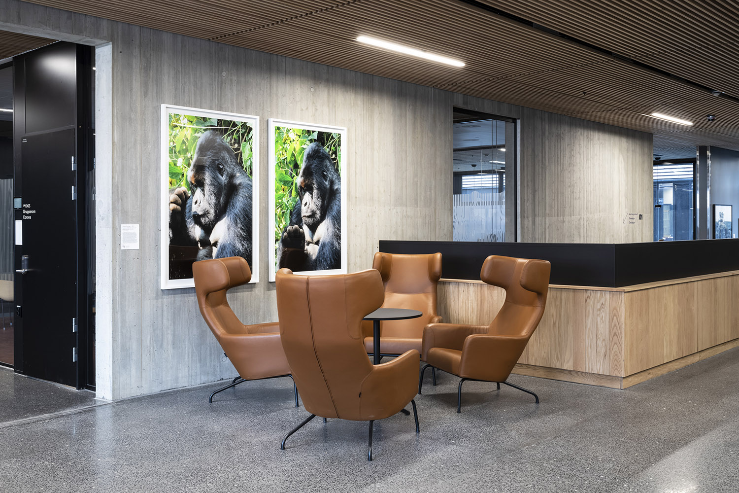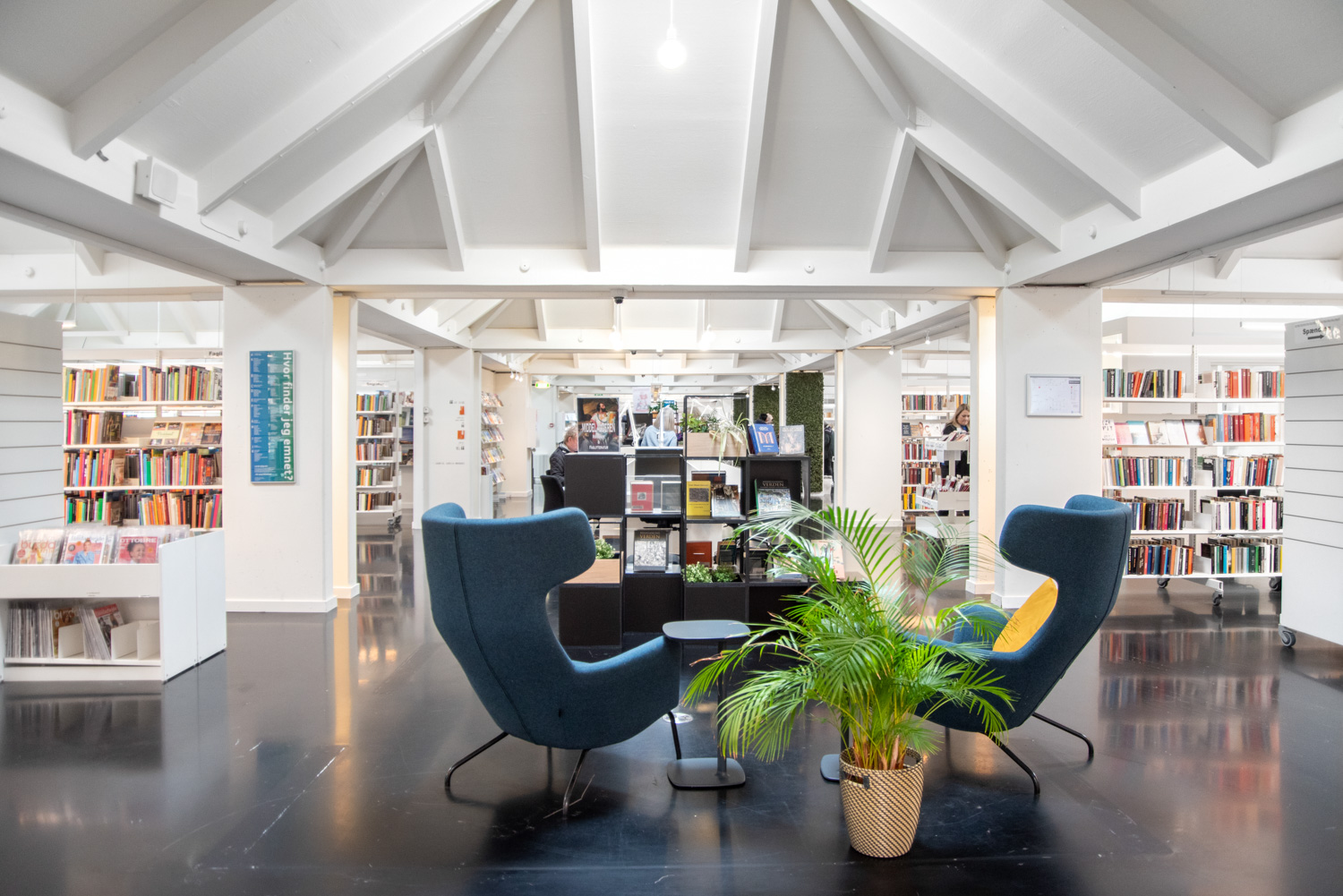 De Havana stoel van Softline is een tijdloze klassieker die warmte en gezelligheid toevoegt aan het bibliotheekinterieur.