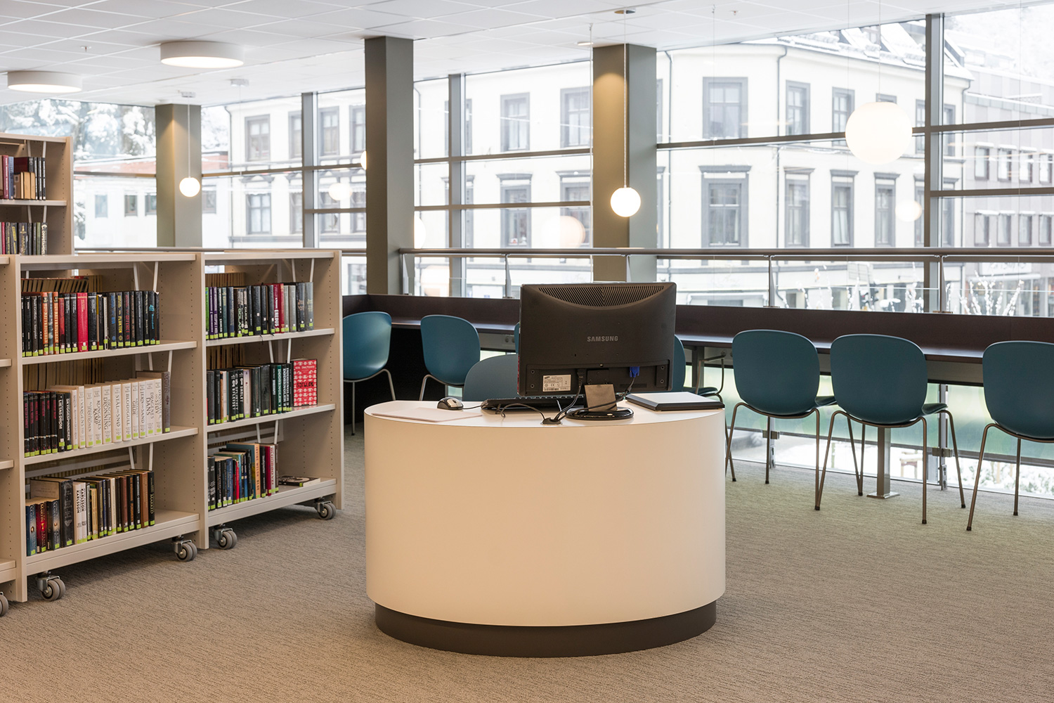 Kleinere balies in een clean en functioneel ontwerp. Ideaal voor de grote bibliotheek als informatiedesk of zoekstation en voor schoolbibliotheken als inschrijfbalie. Goede toegankelijkheid. Voldoet aan vele gezondheids- en veiligheidsrichtlijnen door zijn eenvoudige hoogteverstelling (electrisch).