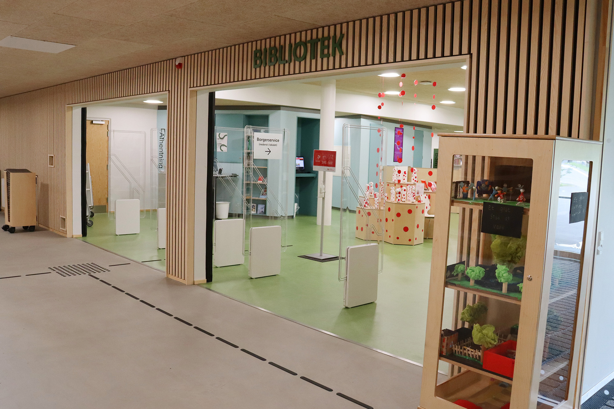 De openbare bibliotheek, de nieuwste van de in totaal vijf in de gemeente Hjørring, bevindt zich net binnen de hoofdingang en wordt de wortel van het nieuwe cultuurhuis genoemd. De bibliotheek huisvest ook de lokale burgerdienst en wordt gebruikt door volwassenen, senioren, kinderen en gezinnen – en natuurlijk door de schoolklassen en instellingen die deel uitmaken van het Huis voor Kinderen en Cultuur.