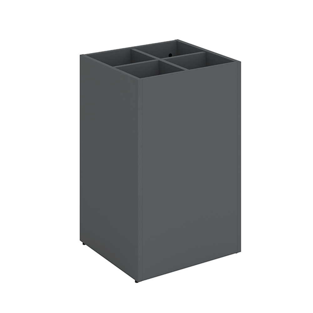 Het podium heeft een afneembare bovenplaat en handige onderverdelingen waarmee het bovenste gedeelte kan worden verdeeld in 2-4 compartimenten, afhankelijk van de mediagrootte.