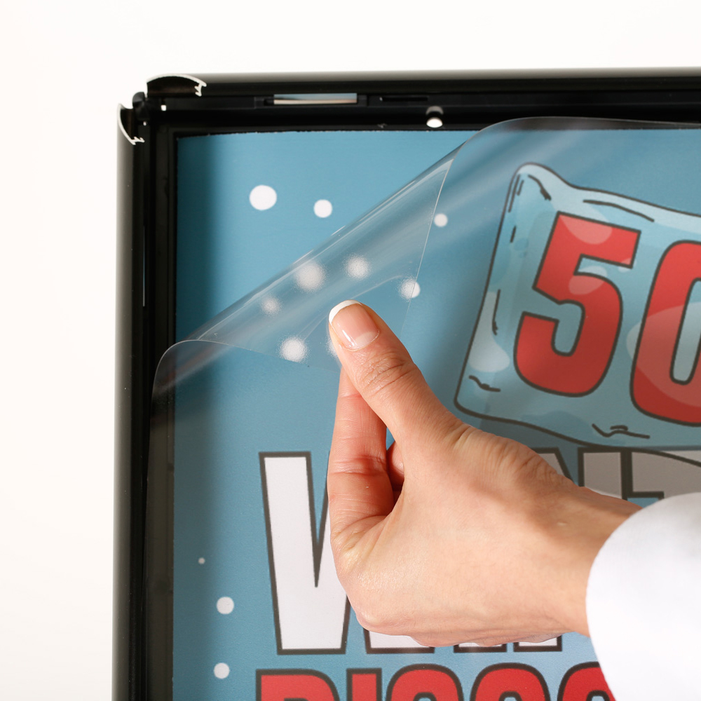 Clipframe met 25mm profiel. Een solide basis en een plastic anti-reflectie cover maken deze infostand bruikbaar in de hele bibliotheek of ontvangstruimte.