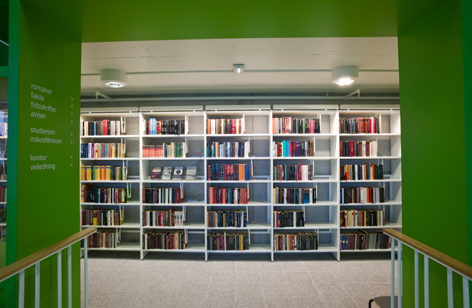 De lichte en luchtige bibliotheek strekt zich uit over drie verdiepingen. Een speciaal ontworpen groene wand die mooi afsteekt tegen de witte rekken, geeft het interieur een sterke uitstraling. De panoramische ramen bieden een spectaculair uitzicht over de rivier. Natuur en traditie worden samengebracht met ontwikkeling en innovatie.