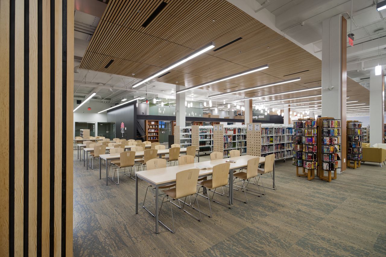 Uitgestrekt over meer dan 2.973 vierkante meter biedt de interieuroplossing meer ruimte voor boeken, voor beweging en high tech-voorzieningen. Het resultaat: een bibliotheek die een blijvende indruk nalaat.