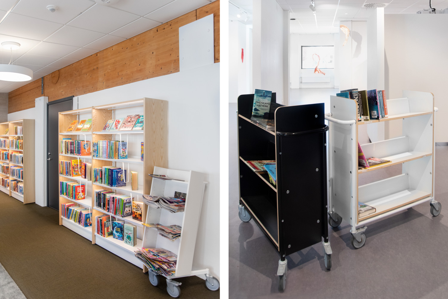 Doordat er een grote afstand is tussen de legplanken is deze boekenwagen uitermate geschikt voor grotere boeken en klasseermappen.