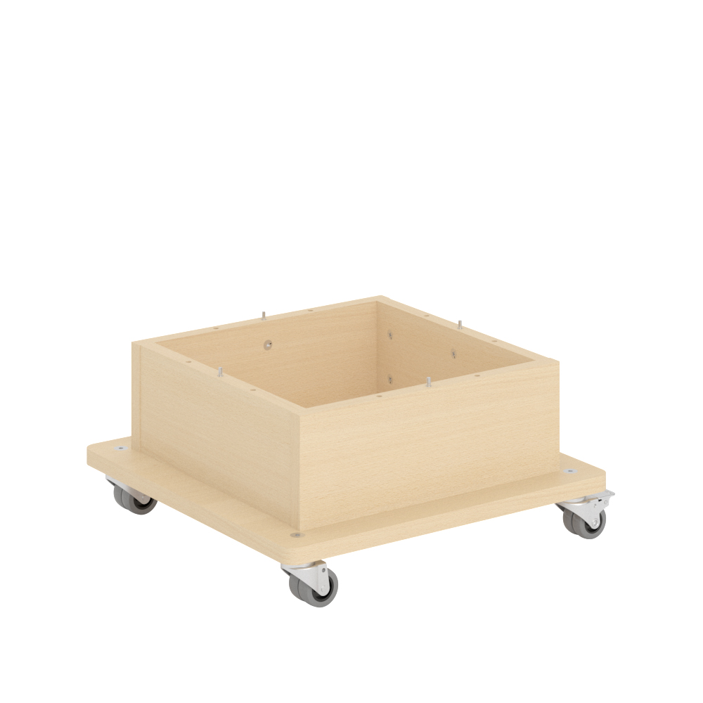 Dankzij de constructie van dit onderstel is de hoogte van de boekentoren met het onderstel eronder gemonteerd en de standaard uitvoering zonder wielen, dezelfde.