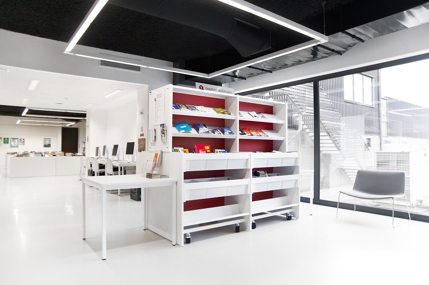 Voor de bibliotheek van Affligem was een duidelijk inrichtingsconcept vooropgesteld door het interieurarchitectenbureau Pointiv. De bibliotheek als weerspiegeling van je woon- en leefomgeving. Het uiteindelijke resultaat toont dat we door de kwaliteit van onze producten en ons vermogen om interieuroplossingen aan te bieden beantwoord hebben aan deze architecturale visie.