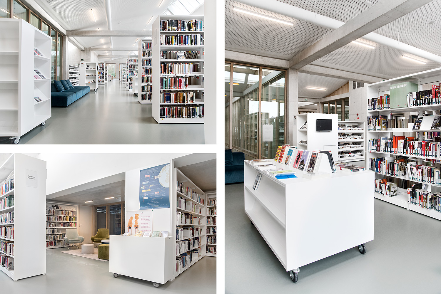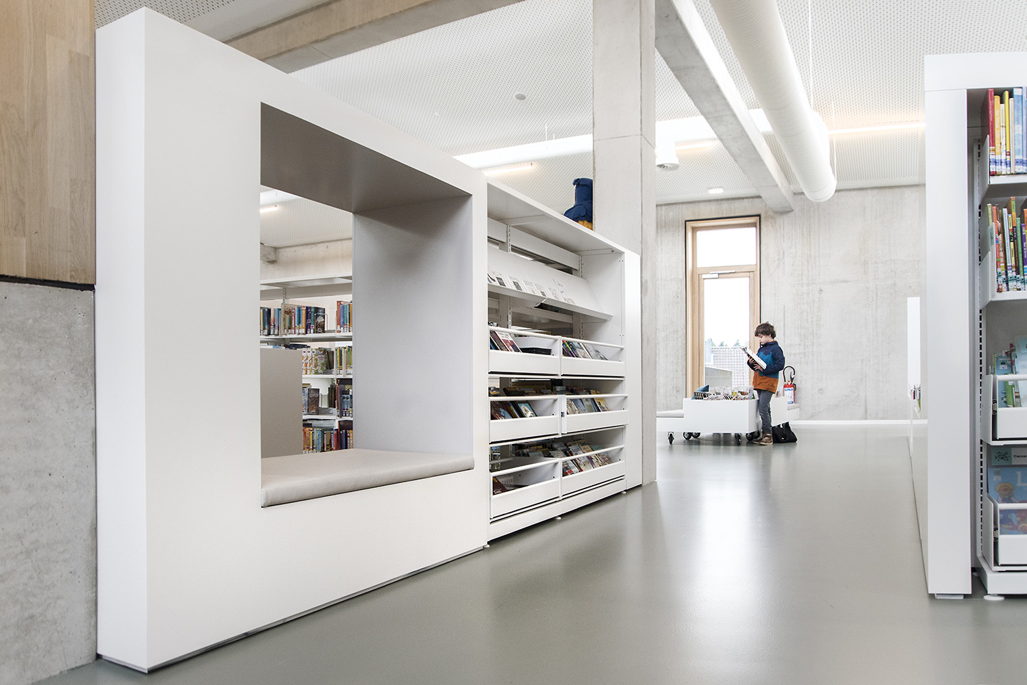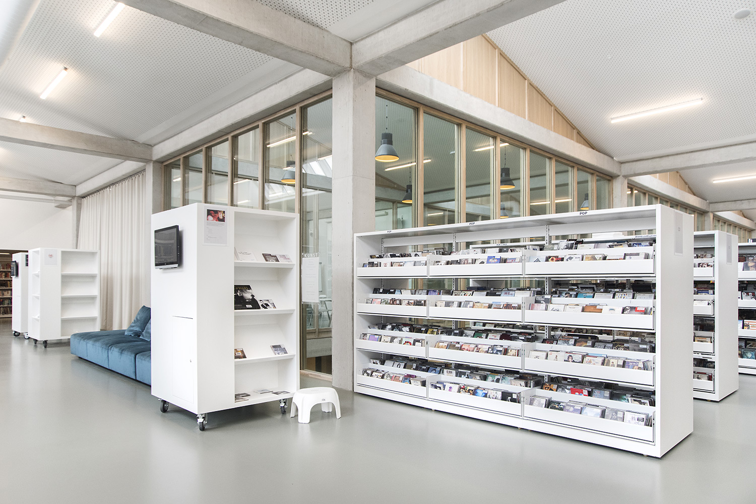 De inrichting werkt ondersteunend aan de bibliotheek zodat ze haar functies van lezen, leren, ontmoeten, ontlenen en creëren perfect kan invullen. Er is aangenaam zitmeubilair voorzien, een bibstudio om te studeren, een babbelbox, aangepast kindermeubilair, een zelfuitleen op maat van de bezoekers, een service punt waar je terecht kan met je vragen, etc. Een aanrader om te bezoeken.