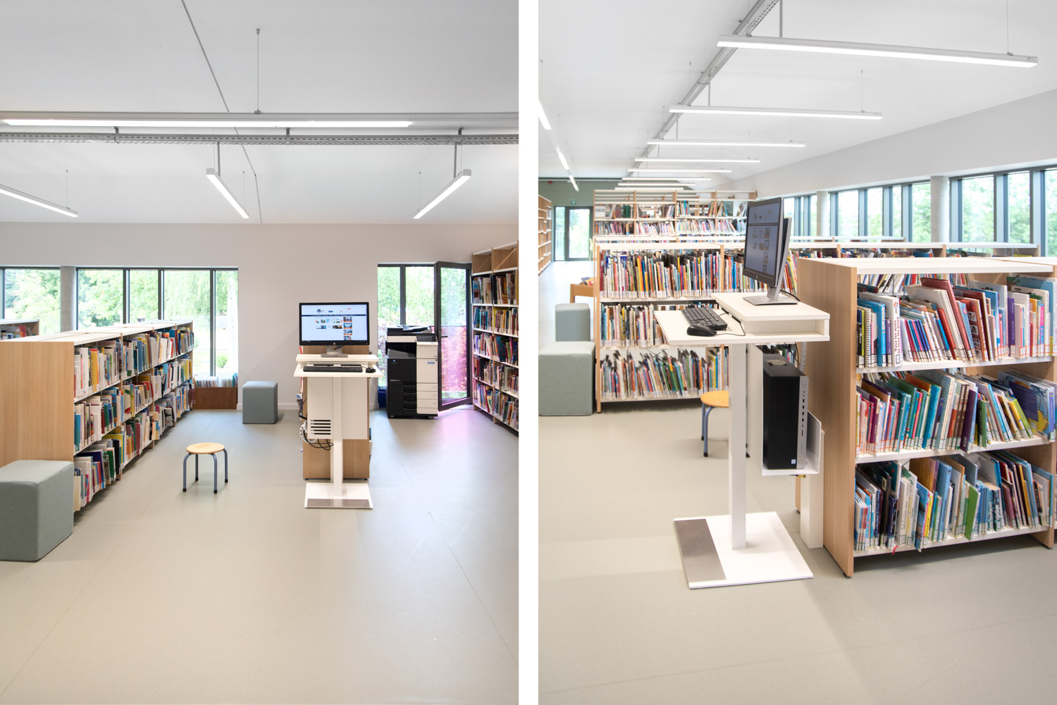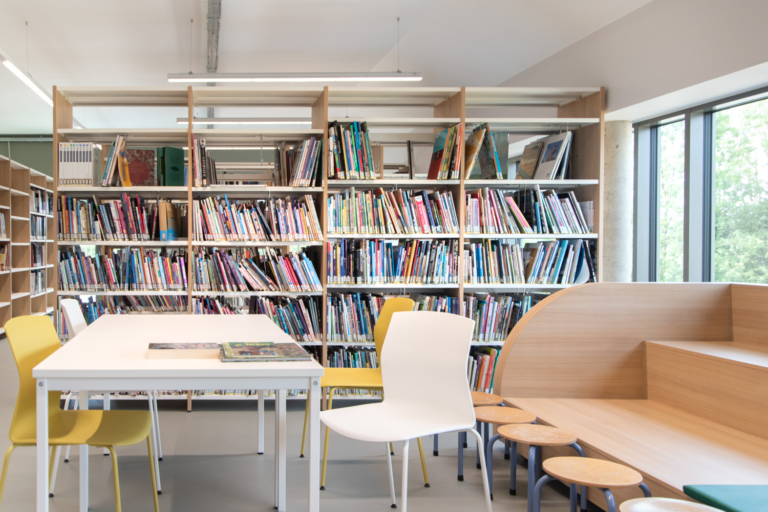 Bibliothecarissen Jenny Guillaume en Isabelle Prévost omschrijven de bibliotheek als een prettige verblijfplaats: “De bibliotheek is zeer gebruiksvriendelijk. Gezinnen en schoolkinderen genieten van het overzichtelijke en toegankelijke interieur van de bibliotheek. We hebben boeken en andere media voor jongeren en volwassenen in dezelfde ruimte verzameld om het gebruik van de ruimte te optimaliseren en de toegang te vergemakkelijken. In de kinderafdeling hebben we gemerkt dat ons speciale podium erg populair is.”