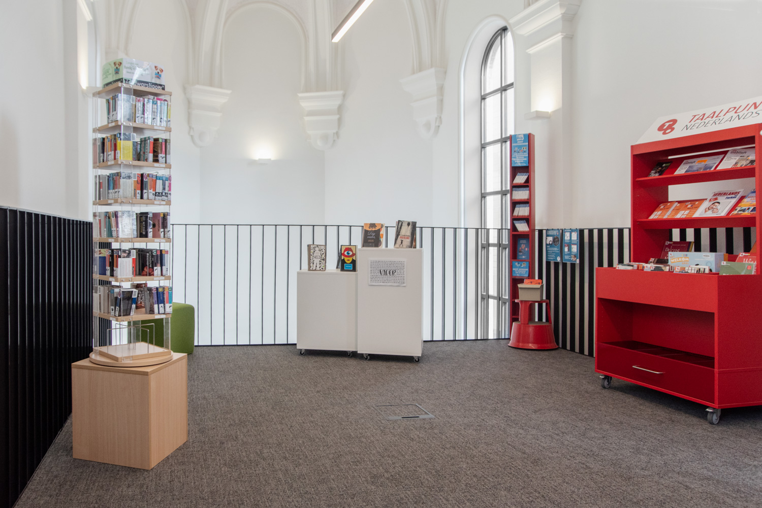 Het voormalige klooster en Winterkapel vormen de nieuwe stek van de bibliotheek in het centrum van Hamme. Het geronoveerde gebouw heeft veel charme. De positie van de zuilen en pilaren in de kapel was bepalend voor de inrichting; een nieuwe mezzanine zorgt voor een extra verdieping.