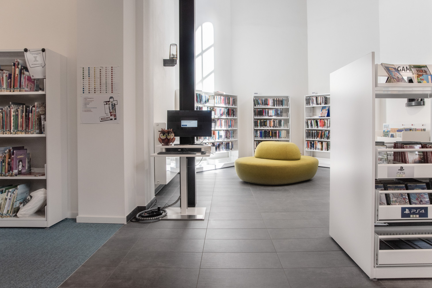 Bibliothecaris Katrien Schroyens is trots: “De klanten zijn zeer enthousiast over de nieuwe bib. Vooral de uitstraling en zitelementen spreken ontzettend aan. Een veel gehoorde reactie is dat klanten zin hebben om langer in de bib te blijven rondhangen. De bib is dankzij de knusse inrichting een soort publieke huiskamer geworden in het centrum van de gemeente.”