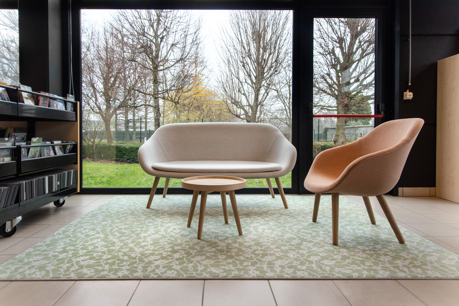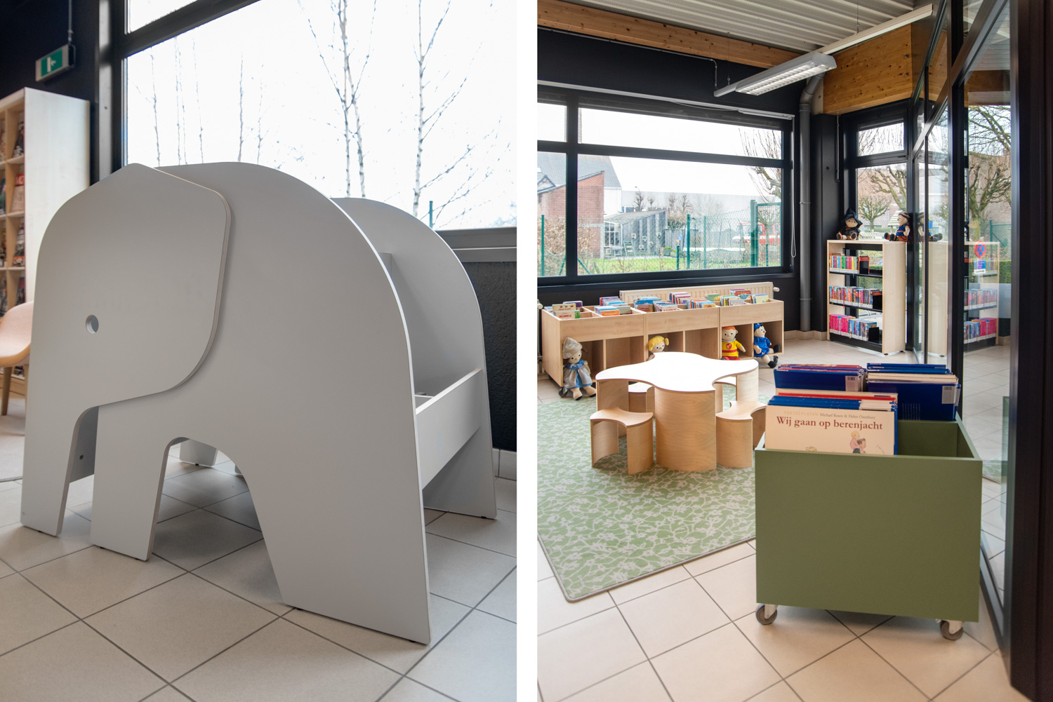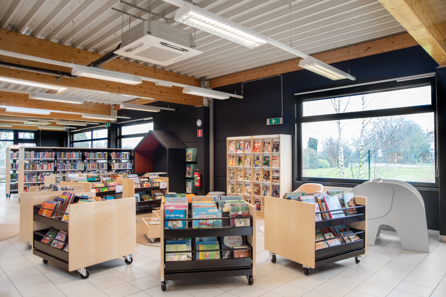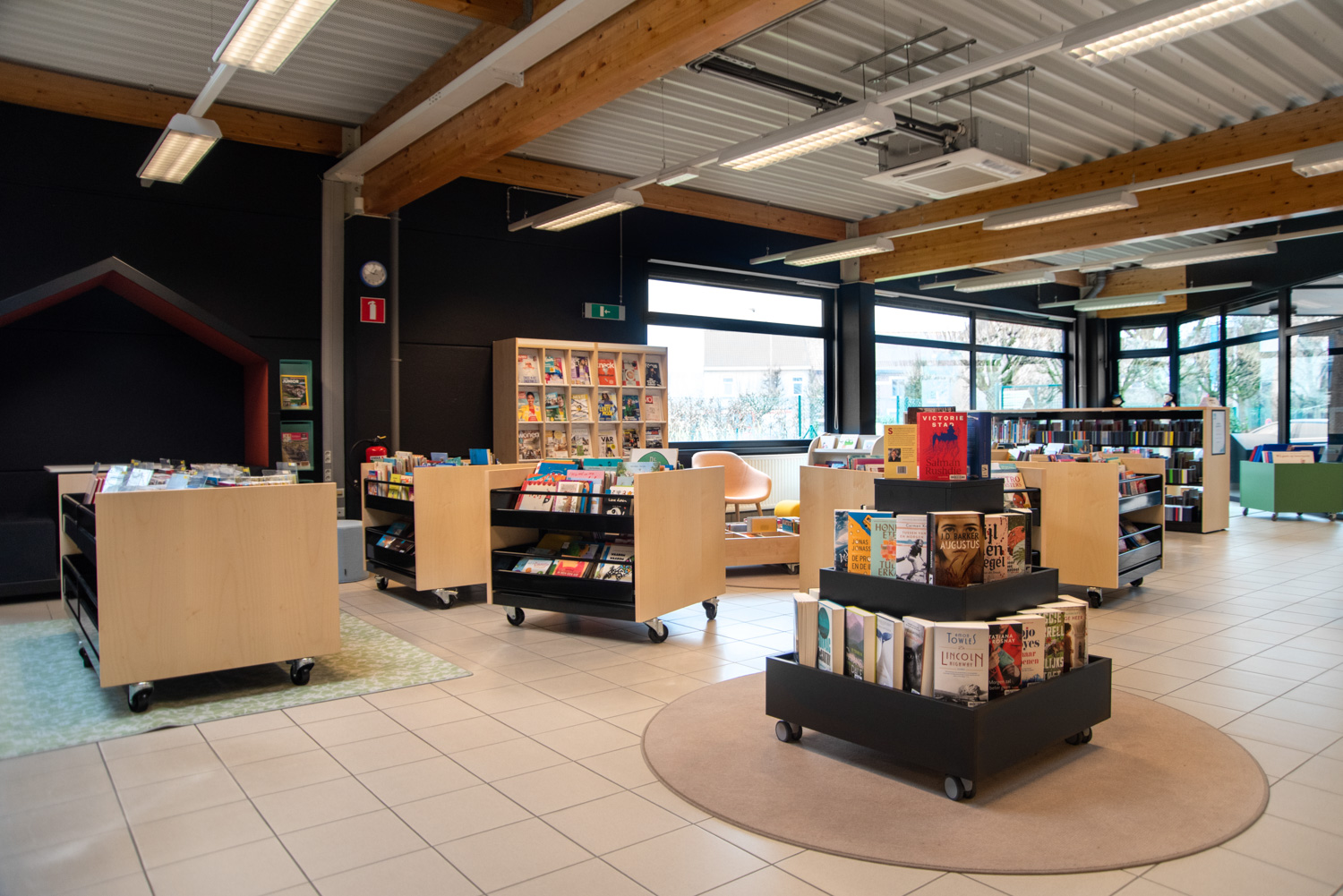 Schulz Benelux stelde een interieurontwerp voor met flexibele, ronde rekken en comfortabele zitjes. Bert Dekimpe: “Schulz Benelux toonde zich een constructieve partner, die openstond voor onze eigen visie en tegelijkertijd bereid was nuttig advies te geven. Het resultaat is een geheel opgefriste bibliotheek waarin het heel prettig vertoeven is, zowel voor bezoekers als voor medewerkers.”