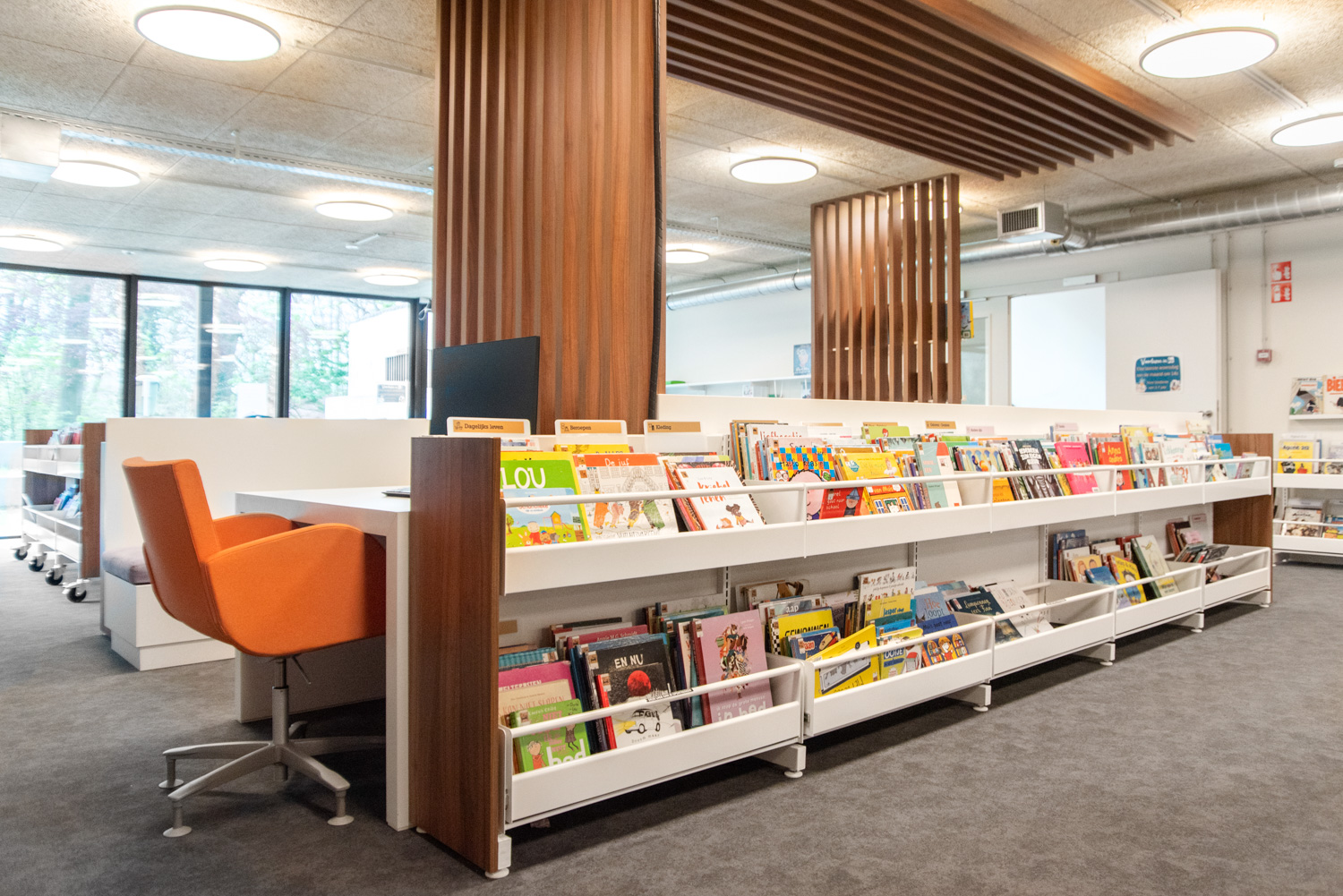 Schulz Benelux verzorgde de binneninrichting van de bibliotheekruimtes en bureaus, met rekmeubilair, zit- en bureaumeubels en maatwerk.