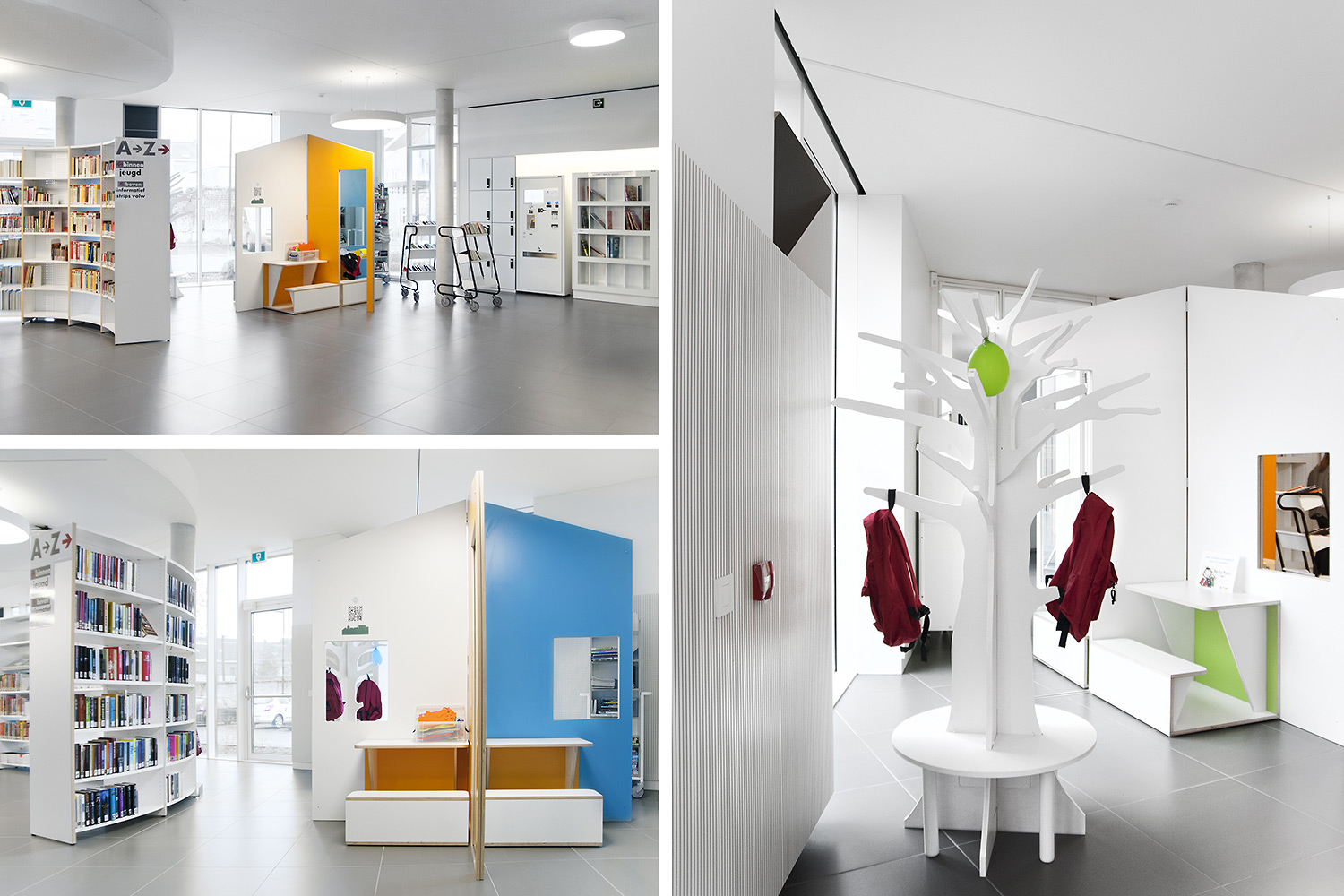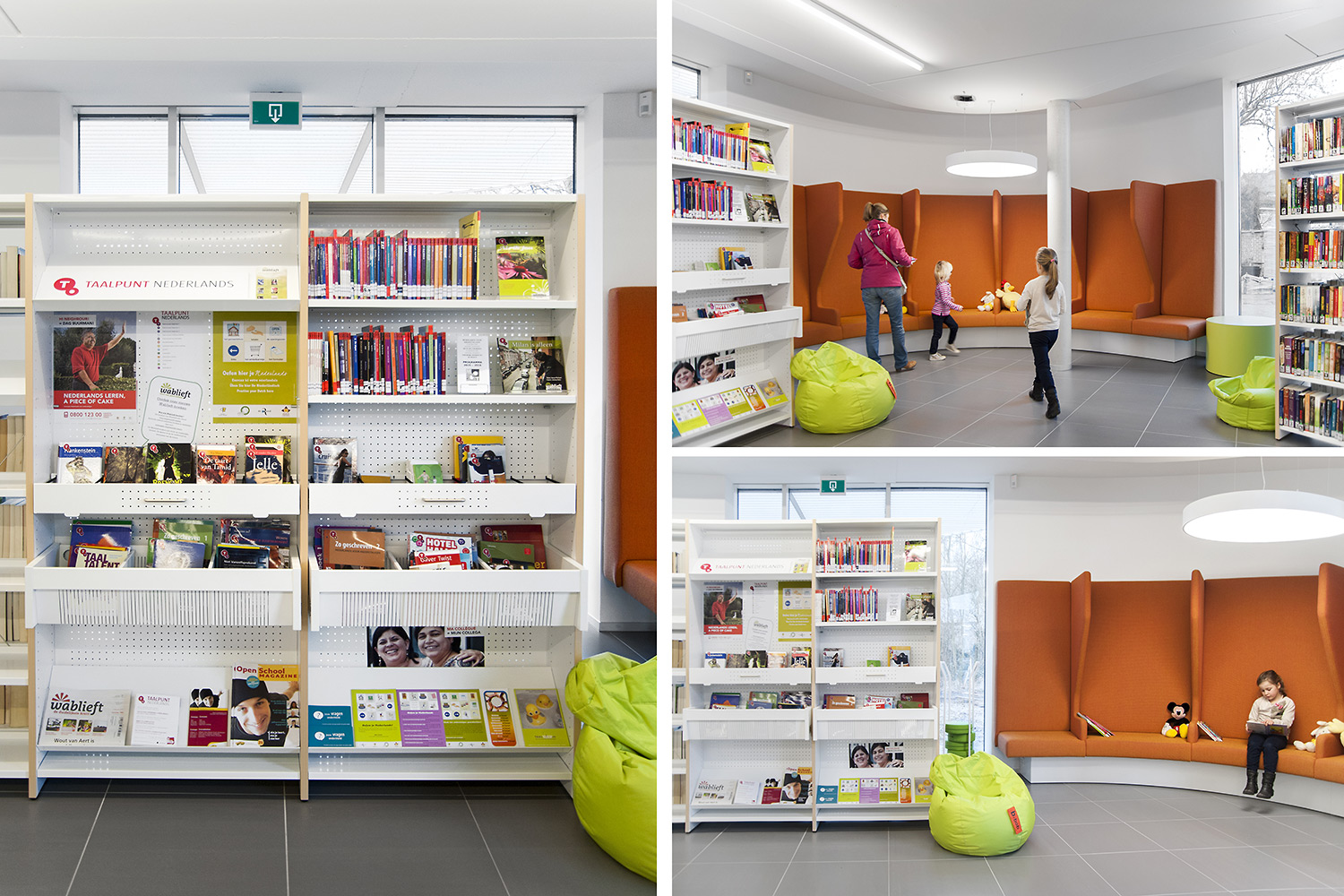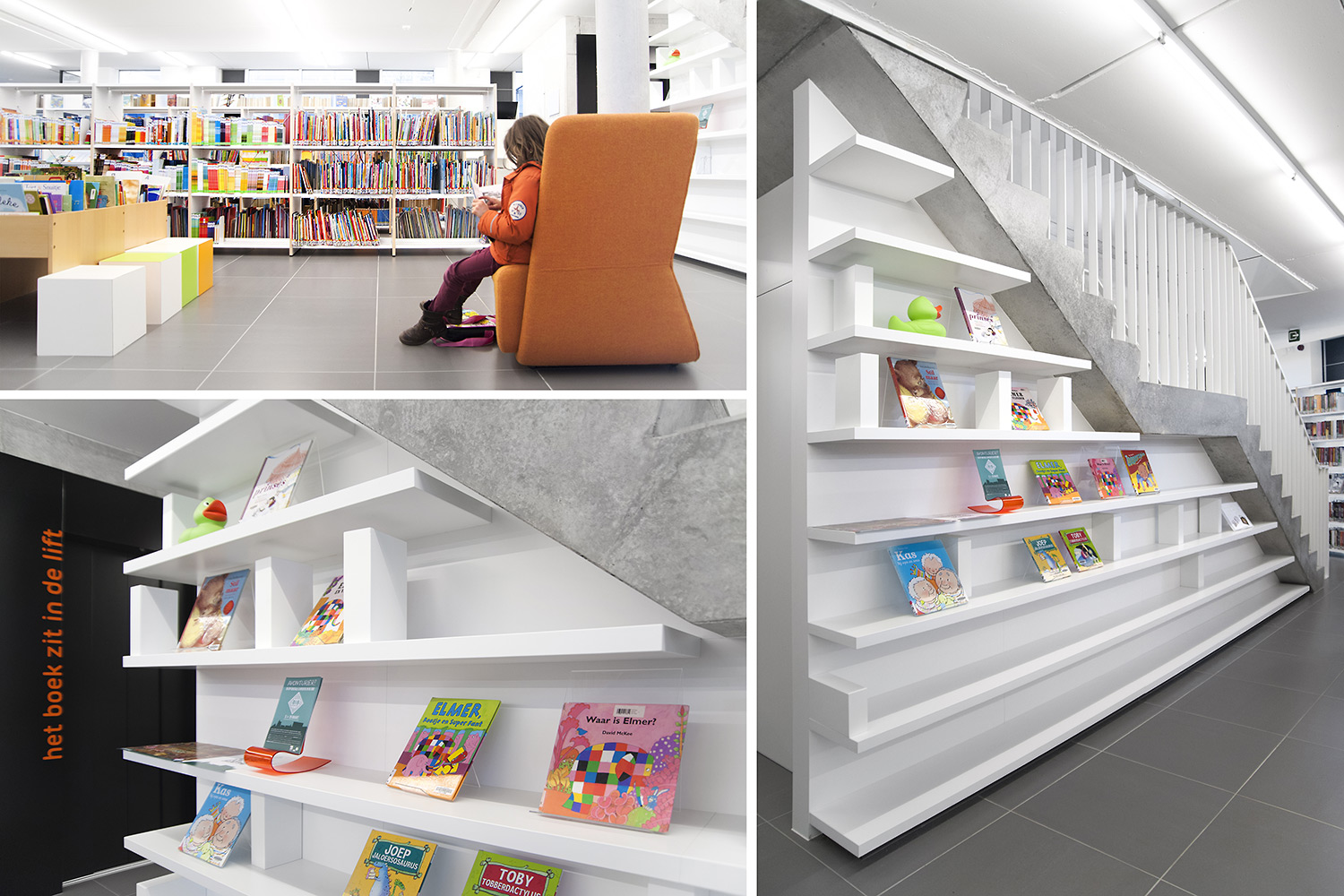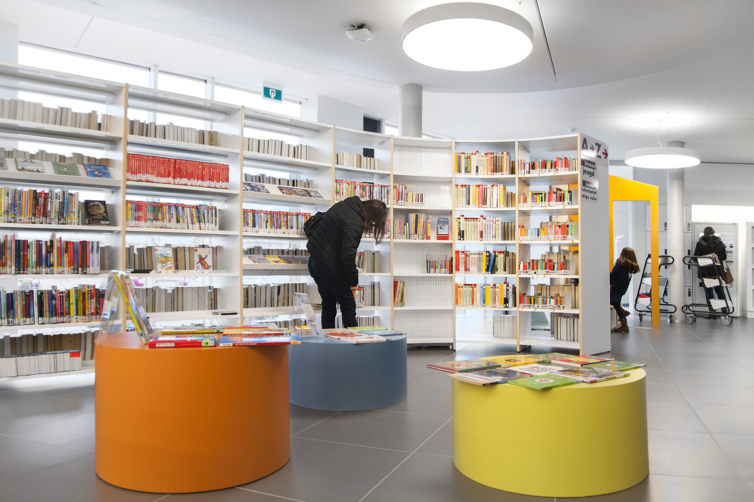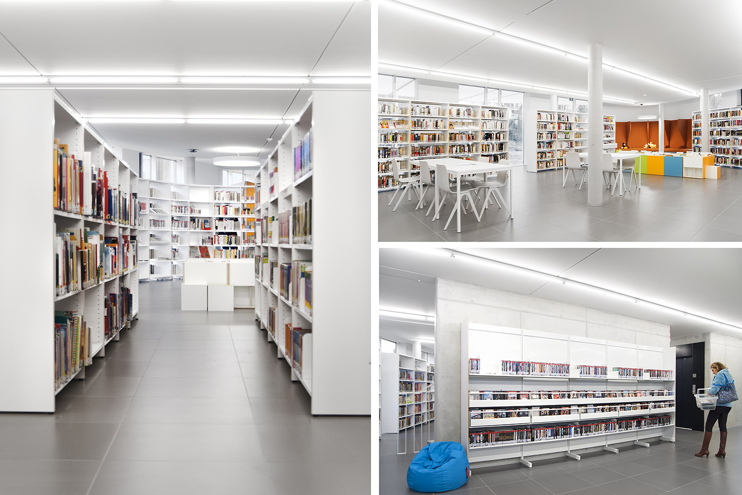 De nieuwe bibliotheek van Ternat werd opgevat als ontmoetingsplaats en kenniscentrum waar bezoekers via allerlei media toegang krijgen tot informatie. Het frisse interieur nodigt uit tot opzoeken en raadplegen, maar ook tot ontmoeten, werken en ontspannen. In de rondom beglaasde bibliotheek vormen de bibliotheekrekken een tweede binnengevel rondom polyvalente binnenruimten. Rustige ruimtes worden gescheiden van levendige zones. RFID en e-balies geven de medewerkers de vrijheid om klantgericht de bezoeker te woord te staan. Met de nadruk op toegankelijkheid, ergonomie en klantvriendelijkheid maakt deze hedendaagse bibliotheek cultuur en informatie bereikbaar voor iedereen.