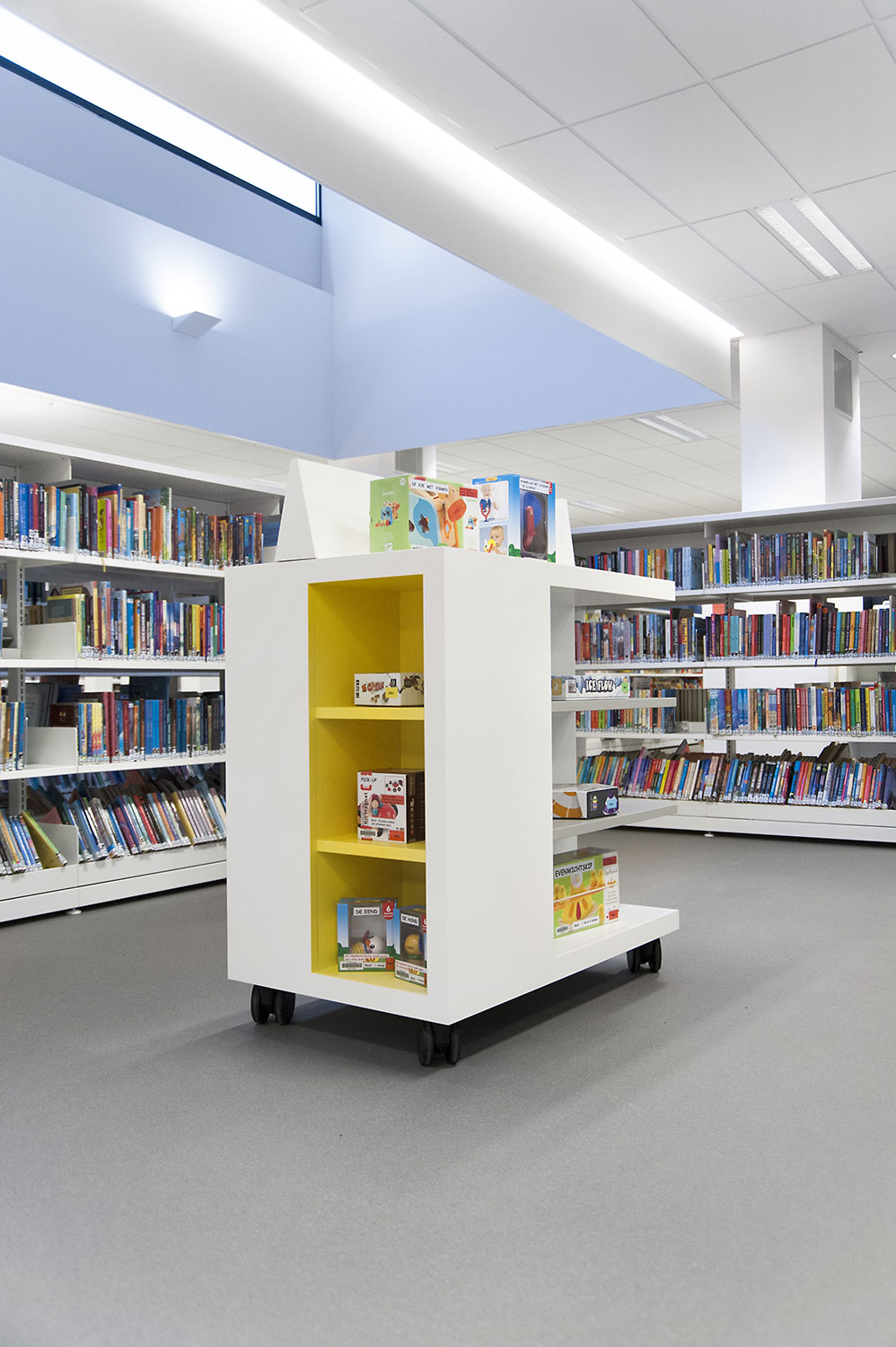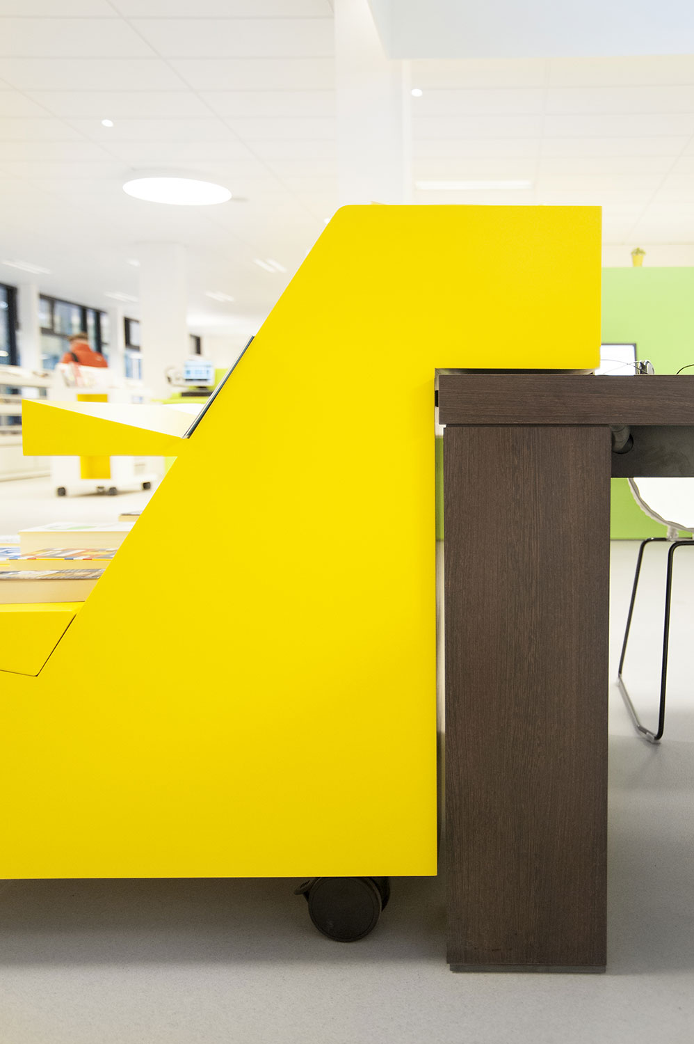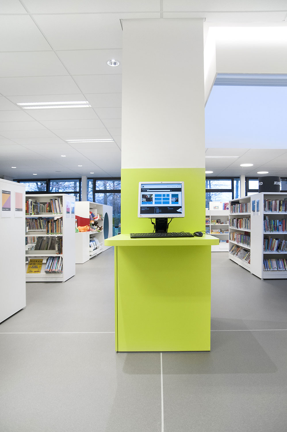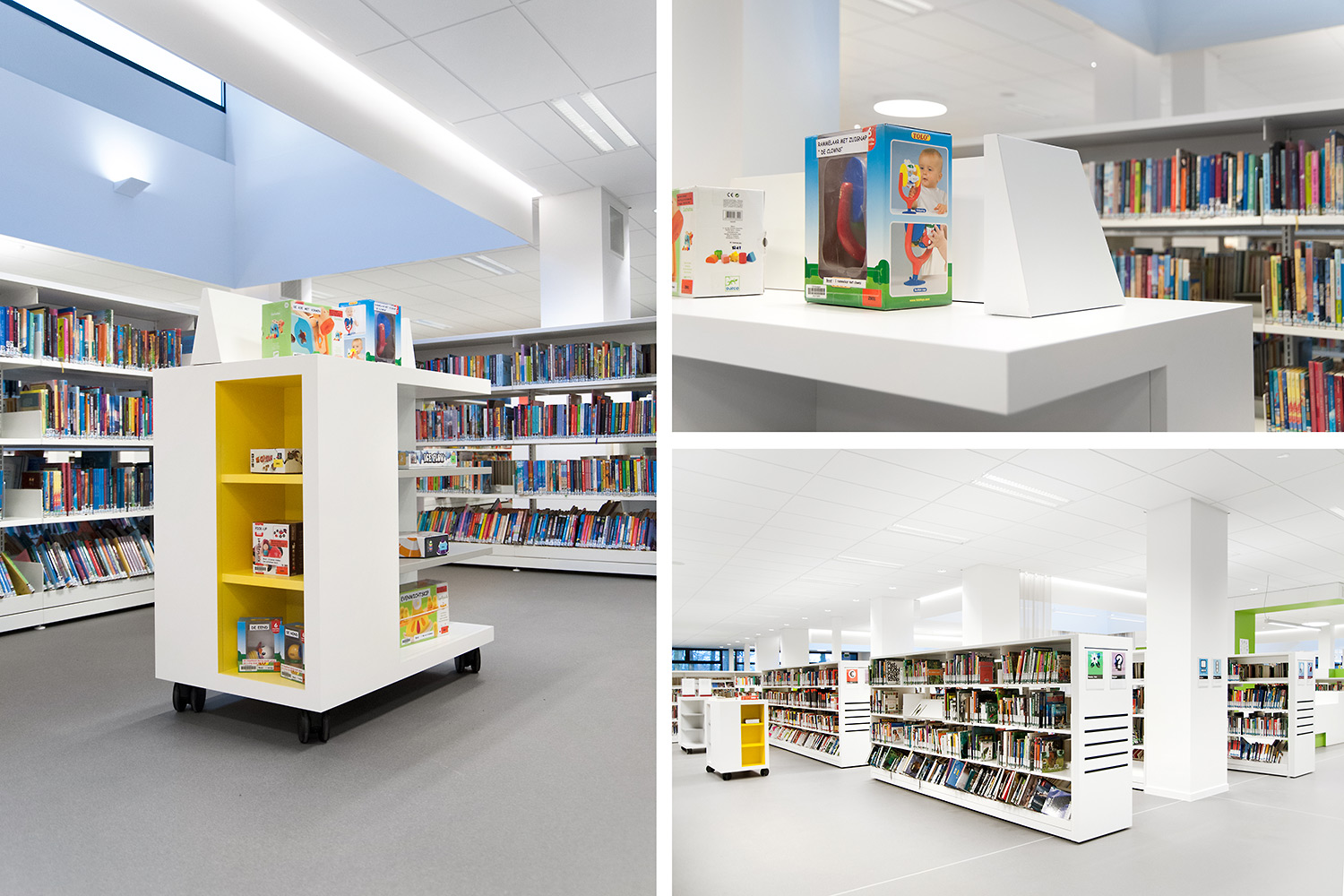 Dit project is het resultaat van een taakoverschrijdende samenwerking tussen verschillende partijen: architecten, ontwerpers, bibliotheek, maatwerker POTTEAU Labo nv en Schulz Benelux.