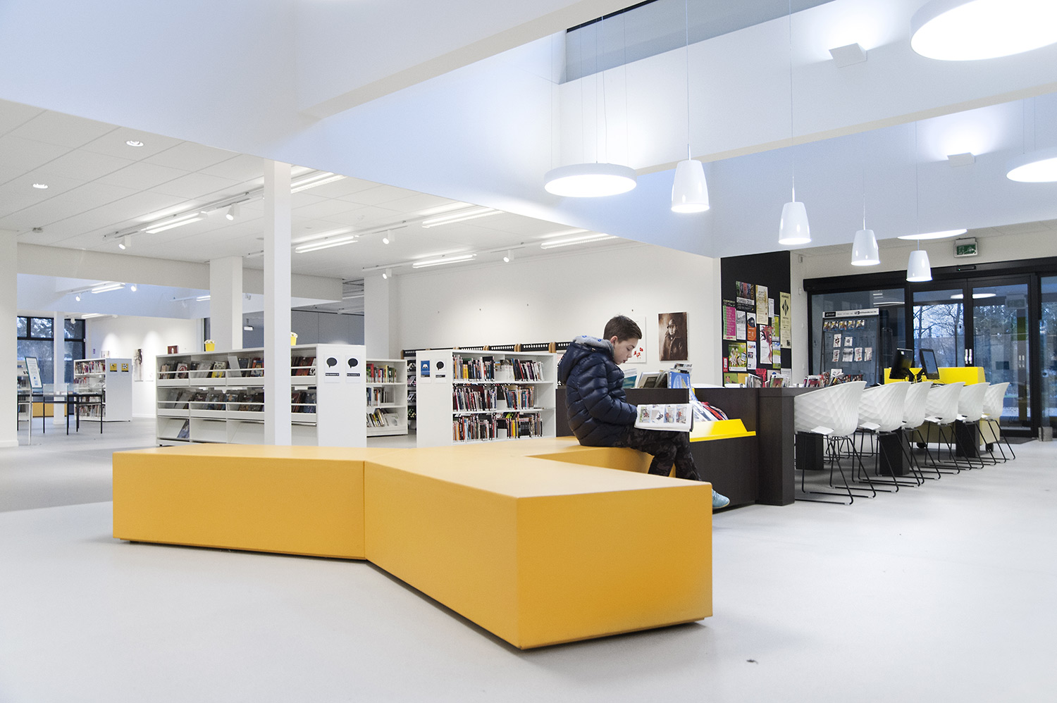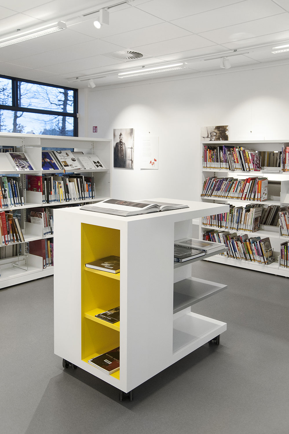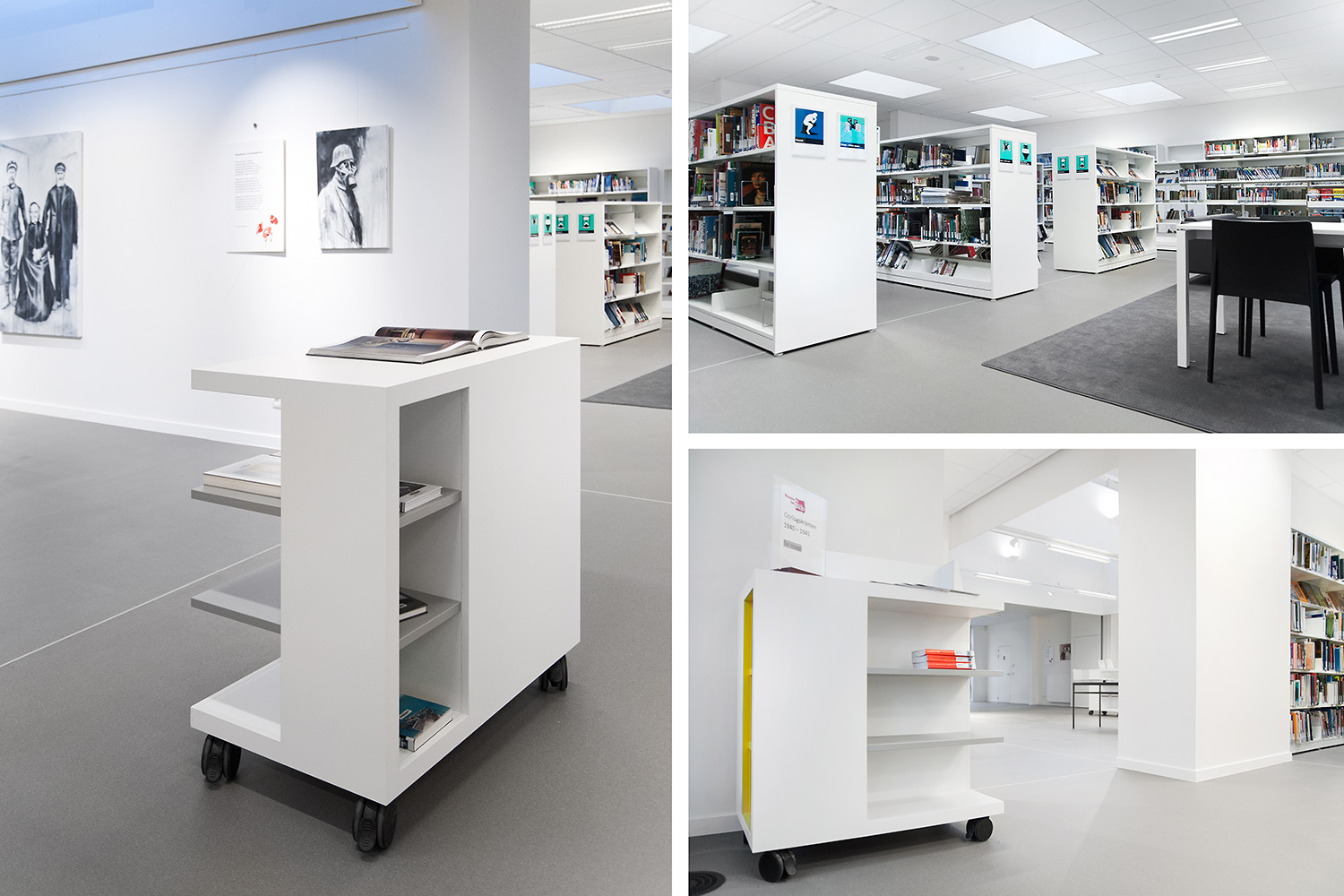 Dit project is het resultaat van een taakoverschrijdende samenwerking tussen verschillende partijen: architecten, ontwerpers, bibliotheek, maatwerker POTTEAU Labo nv en Schulz Benelux.