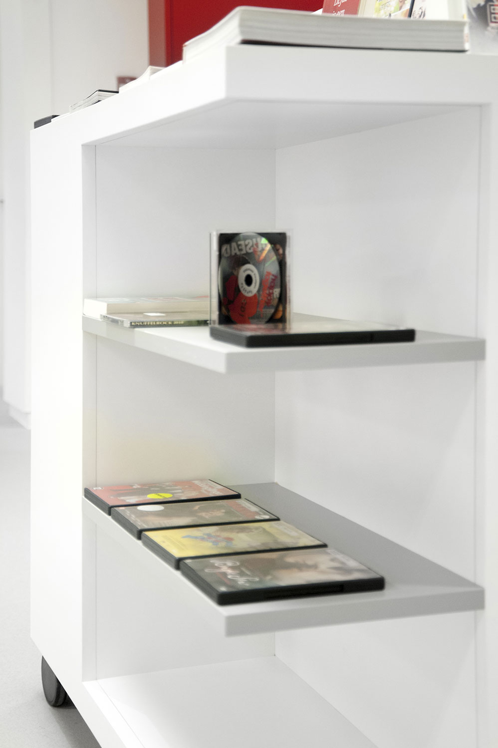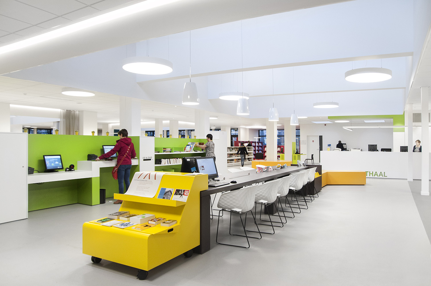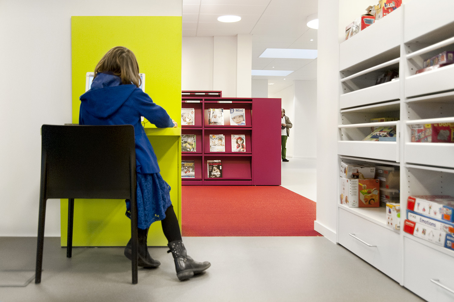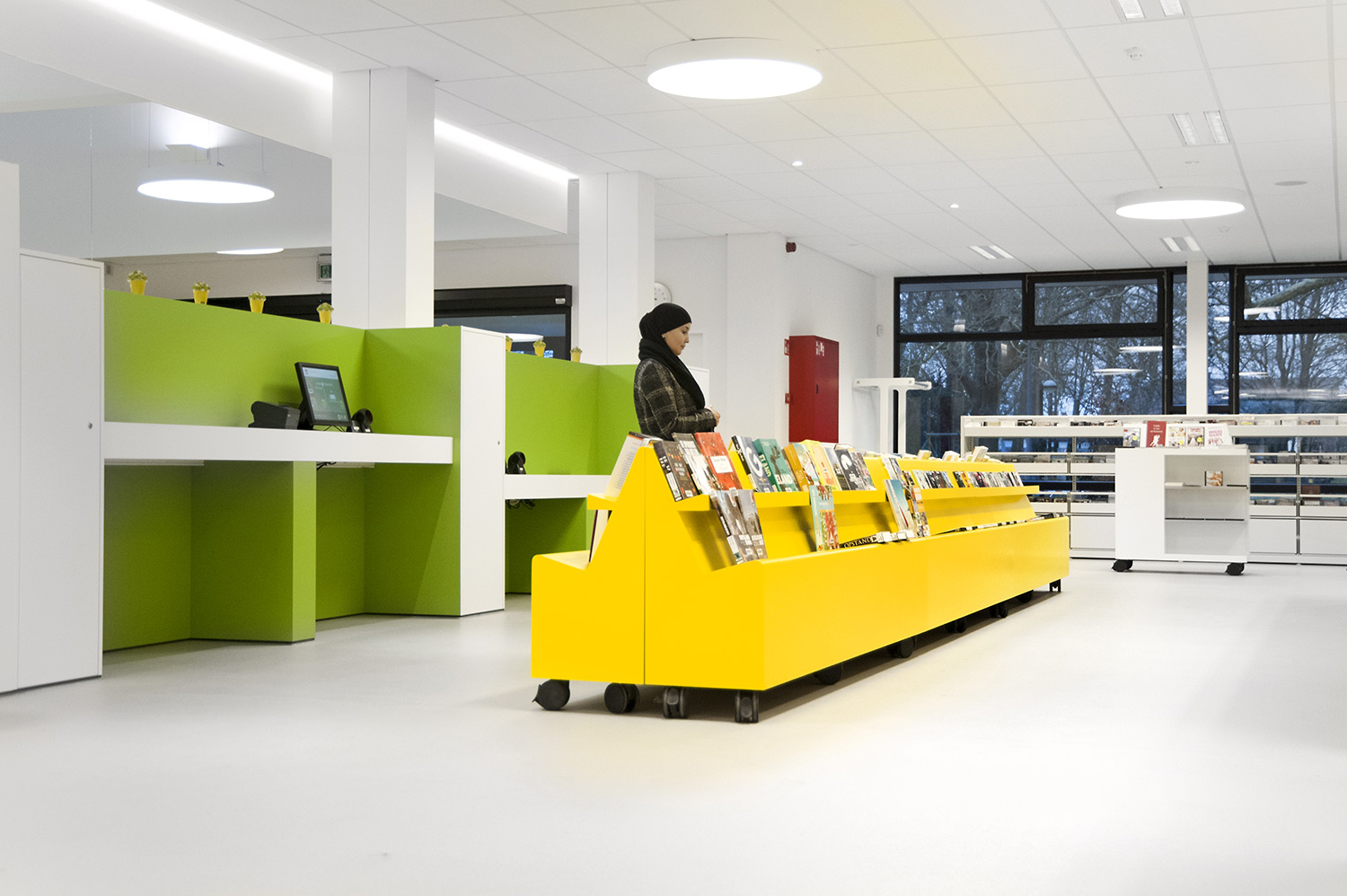 Dit project is het resultaat van een taakoverschrijdende samenwerking tussen verschillende partijen: architecten, ontwerpers, bibliotheek, maatwerker POTTEAU Labo nv en Schulz Benelux.