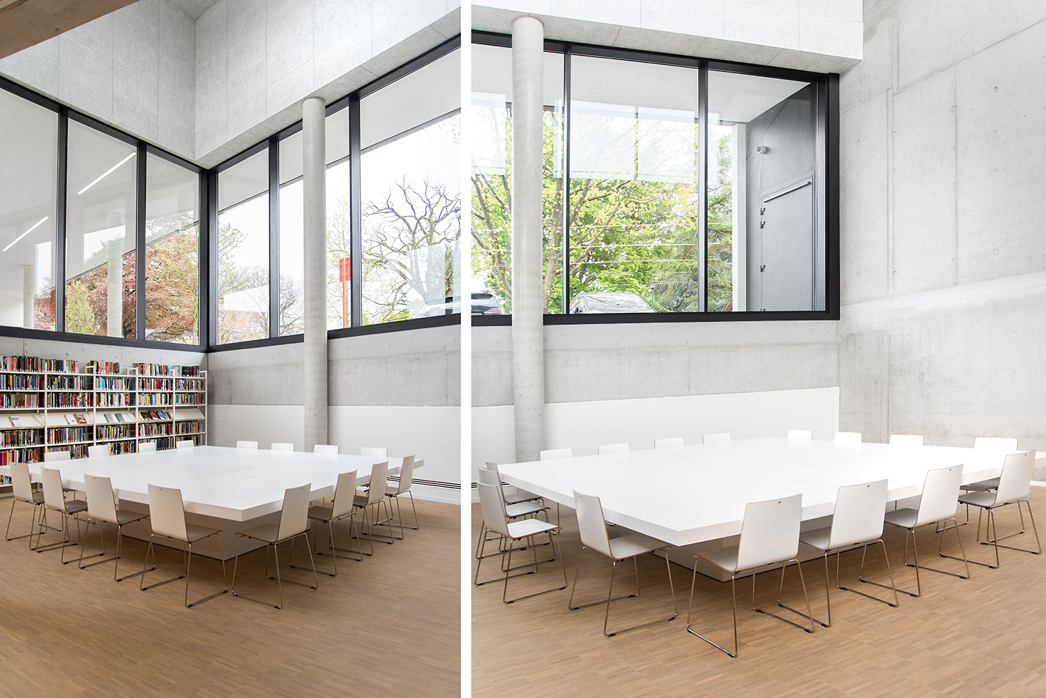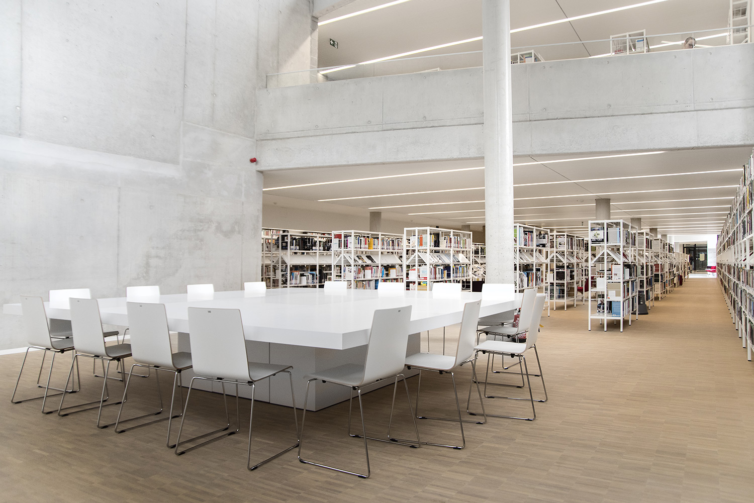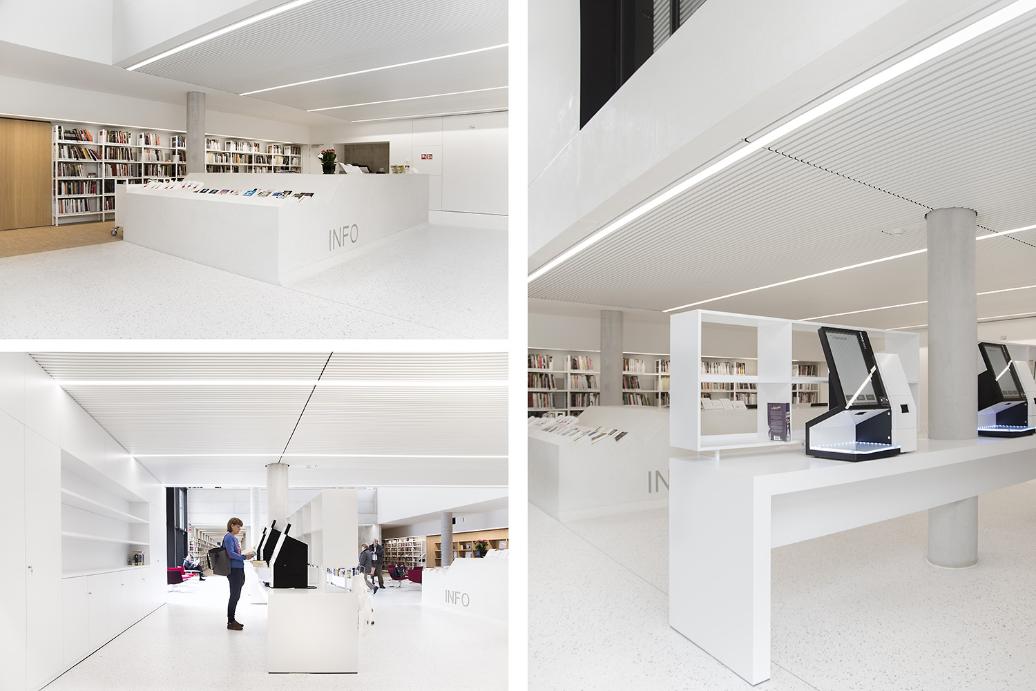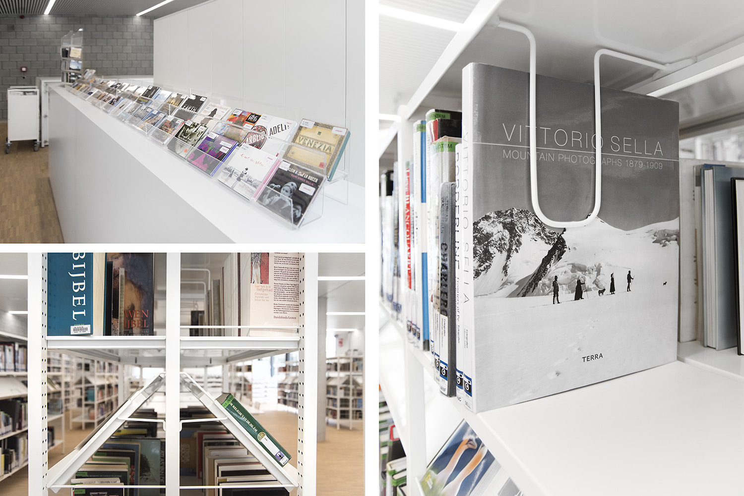 Dankzij een goede samenwerking tussen architect en interieurontwerpers met inbreng van de bib kon ieder zijn competenties inzetten om tot een doordacht resultaat te komen. Dankzij de overdadige lichtinval en het bijna ontbreken van kleur in de ruimte wordt de boekencollectie als belangrijkste onderdeel in het gebouw naar voren geschoven.