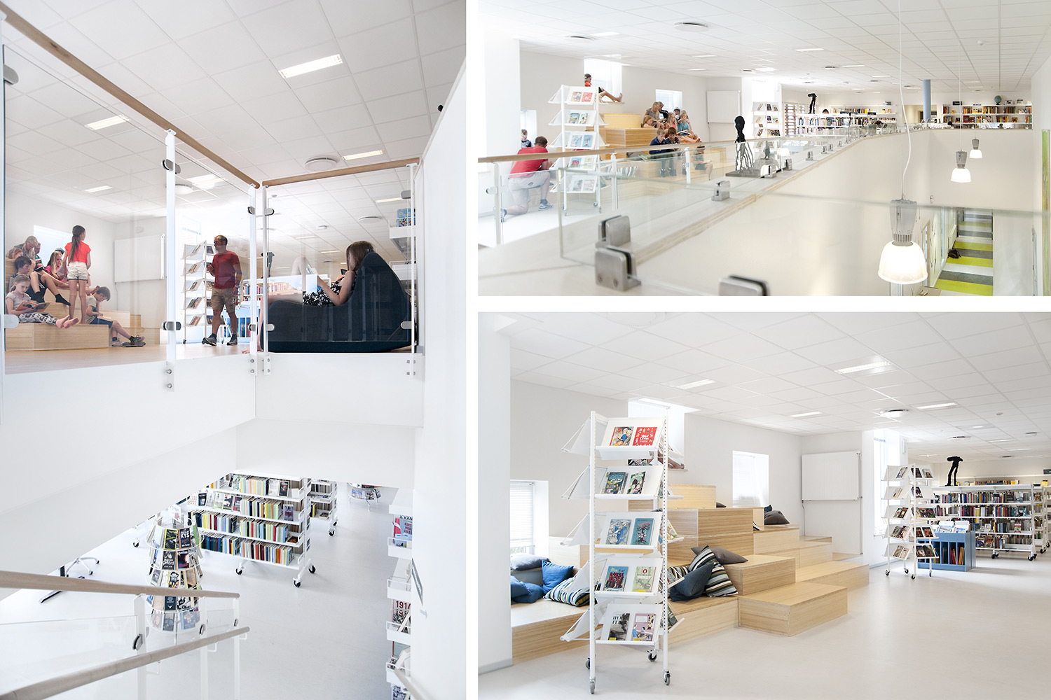 Het interieurontwerp biedt veel mogelijkheden aan voor zowel de studenten als de inwoners van de stad die de bibliotheek gebruiken als werkplek of als een tweede thuis waar ze geïnspireerd worden door de presentatiepanelen en de veranderende tentoonstelling in de bibliotheek.