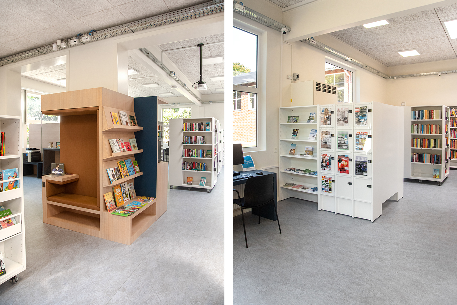 Producten die in de Openbare bibliotheek Agerbæk, Denemarken gebruikt worden