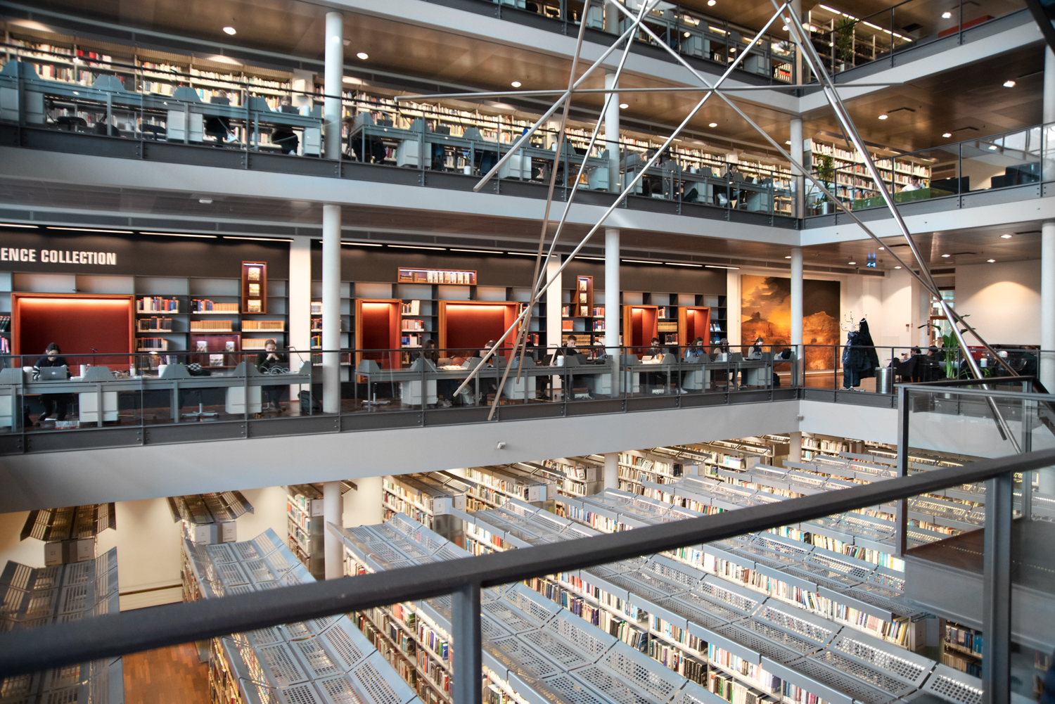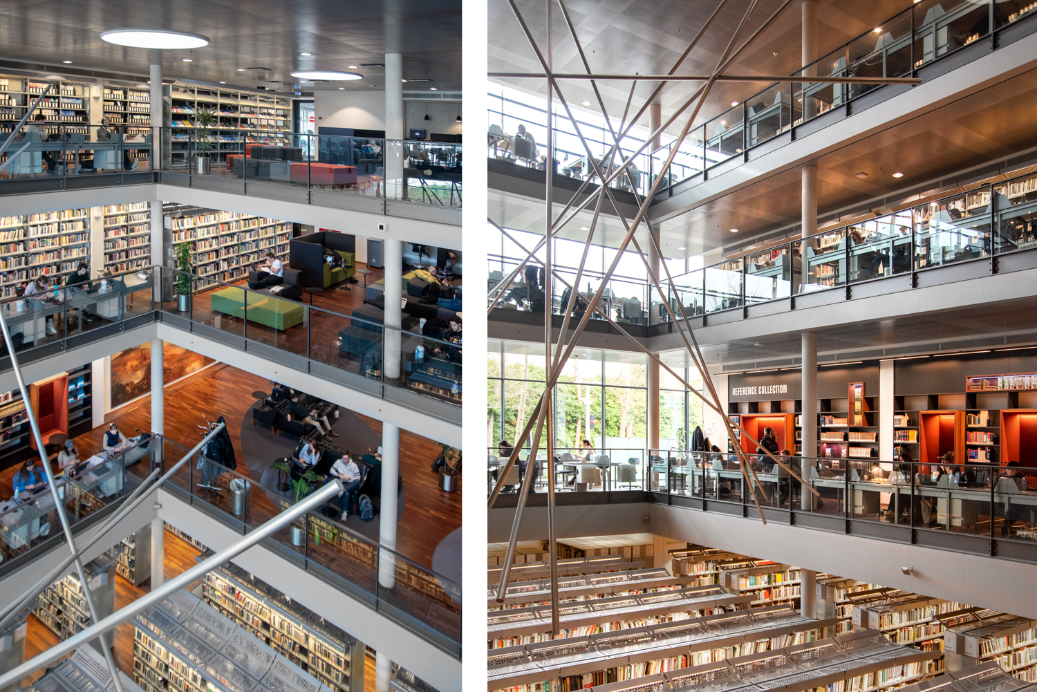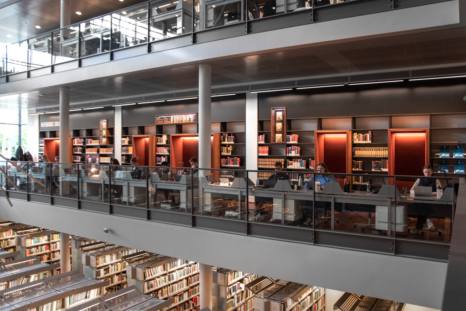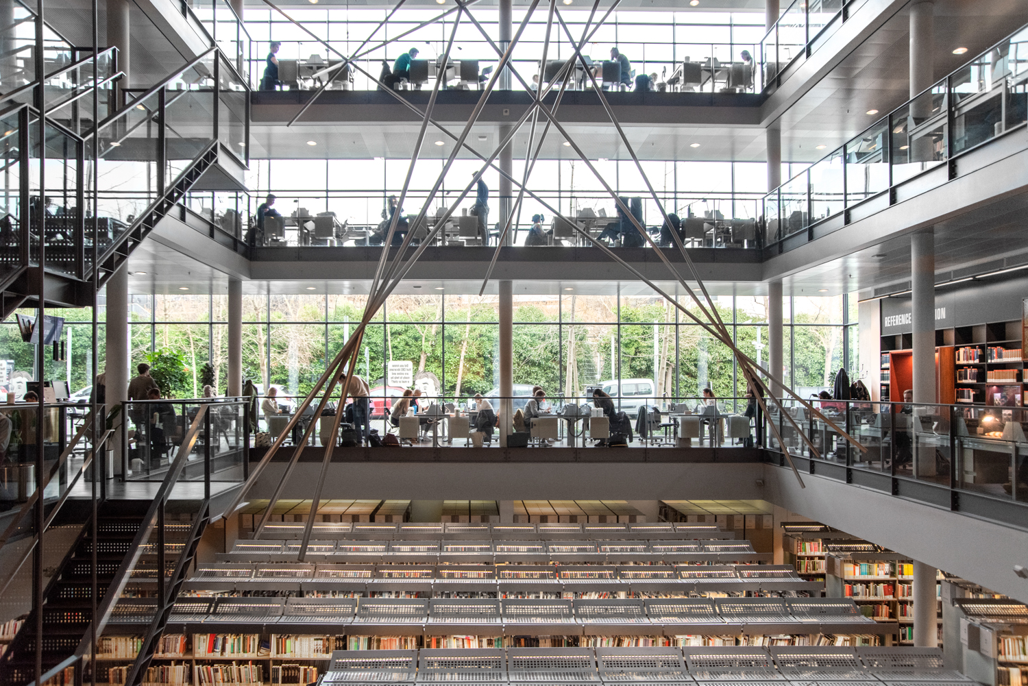 Bij de bibliotheek kunnen de studenten de leeszaal gebruiken om zich onder te dompelen in het lezen van een goed boek, terwijl het personeel prominenter is geplaatst bij de ingang van de bibliotheek. Bijna een miljoen jaarlijkse bezoekers bezochten de afgelopen jaren deze indrukwekkende bibliotheek, die 24 uur per dag open is voor studenten. De modernisering van het interieur van de bibliotheek is gebaseerd op verschillende gebruikersonderzoeken en bovendien geïnspireerd door Cambridge University Futurelib en Dokk1 in Aarhus.