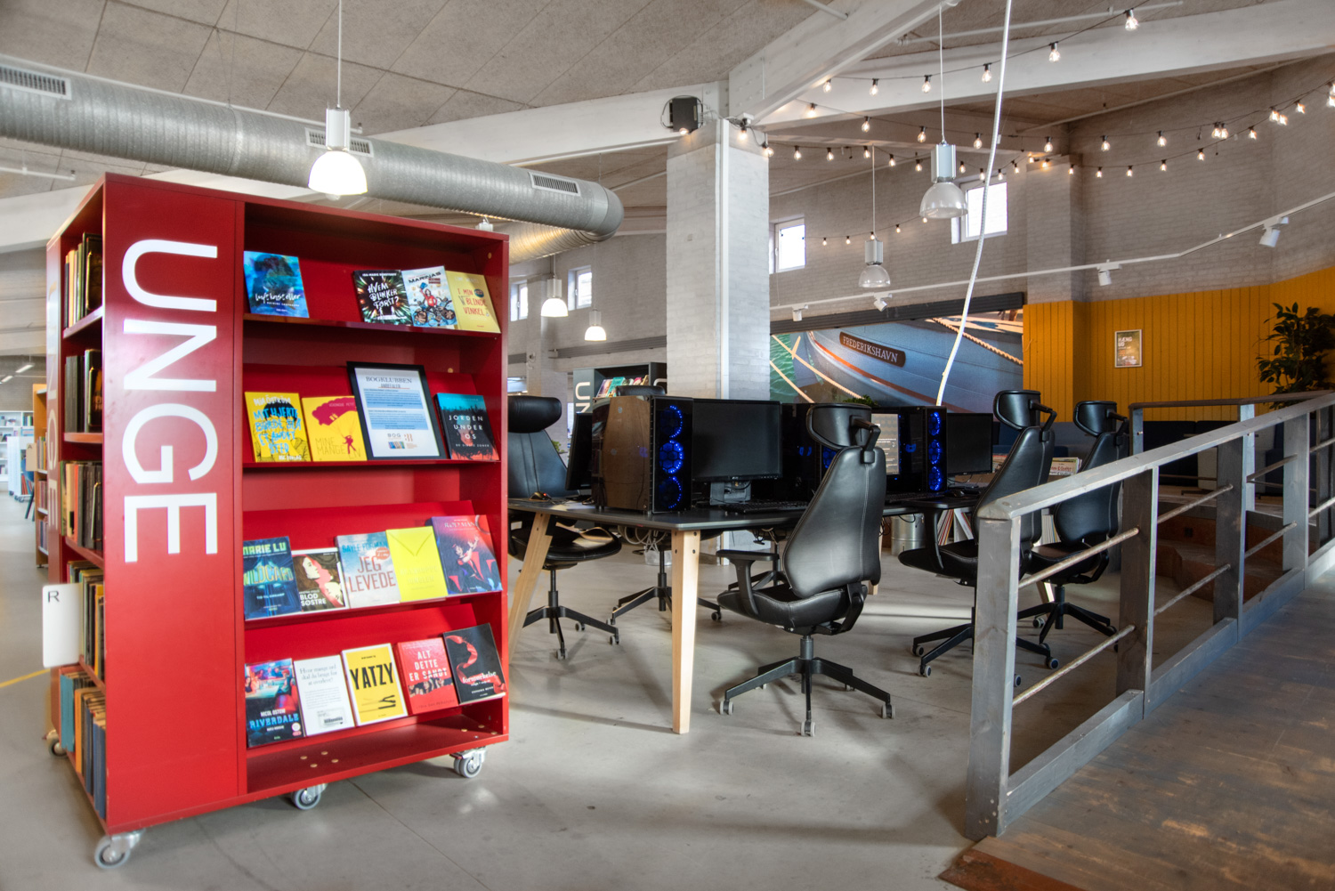 In 2016 gingen we de uitdaging aan om de kinder- en jeugdafdeling in de bibliotheek van Frederikshavn een speelse en unieke inrichting te geven. We wilden een uitnodigende ruimte vormgeven op maat van tieners, en een speelse omgeving scheppen voor jongere kinderen.