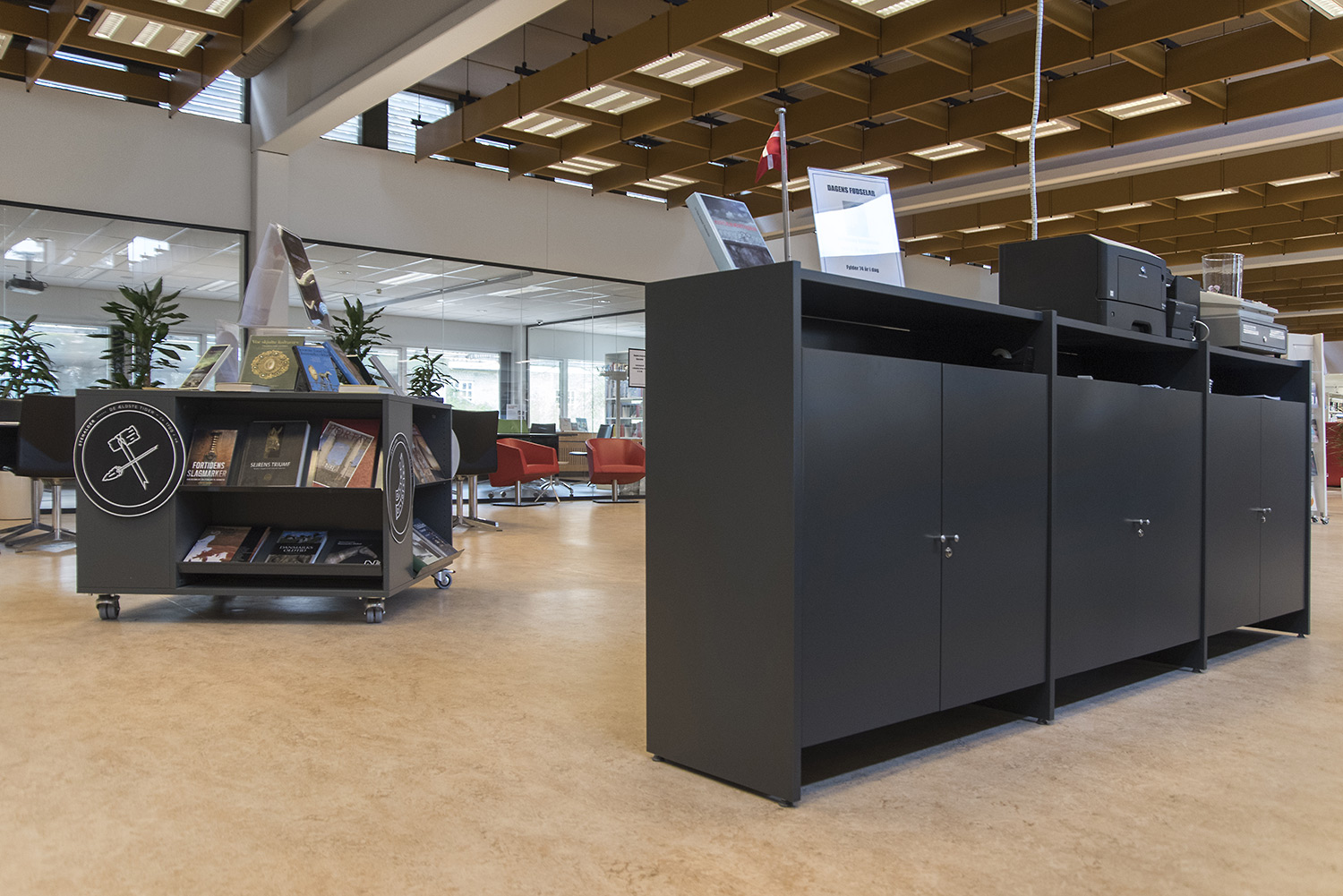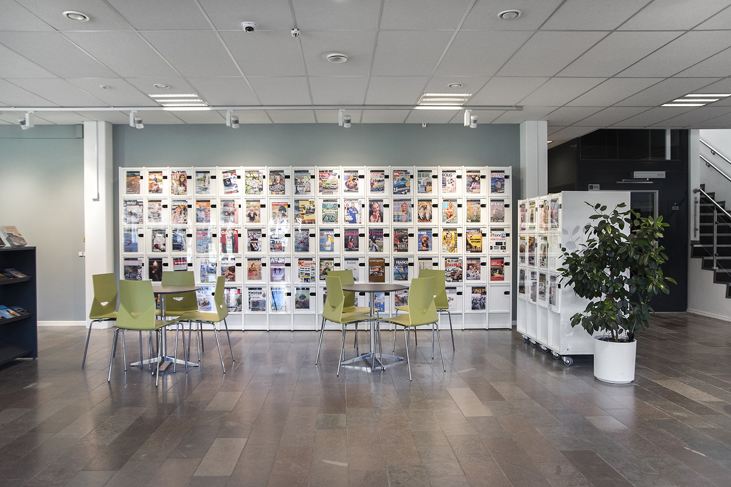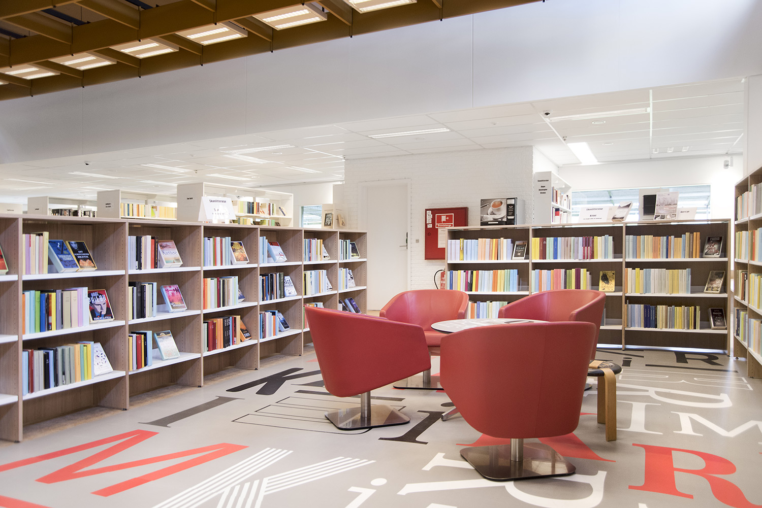Producten die in de Openbare bibliotheek Guldborgsund, Denemarken gebruikt worden