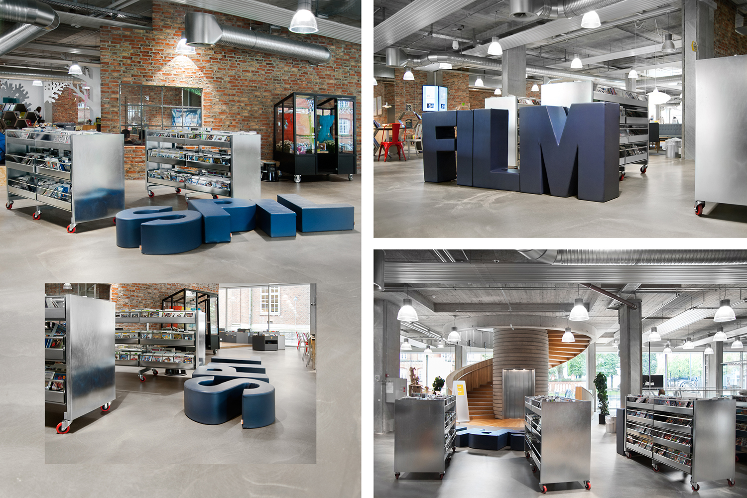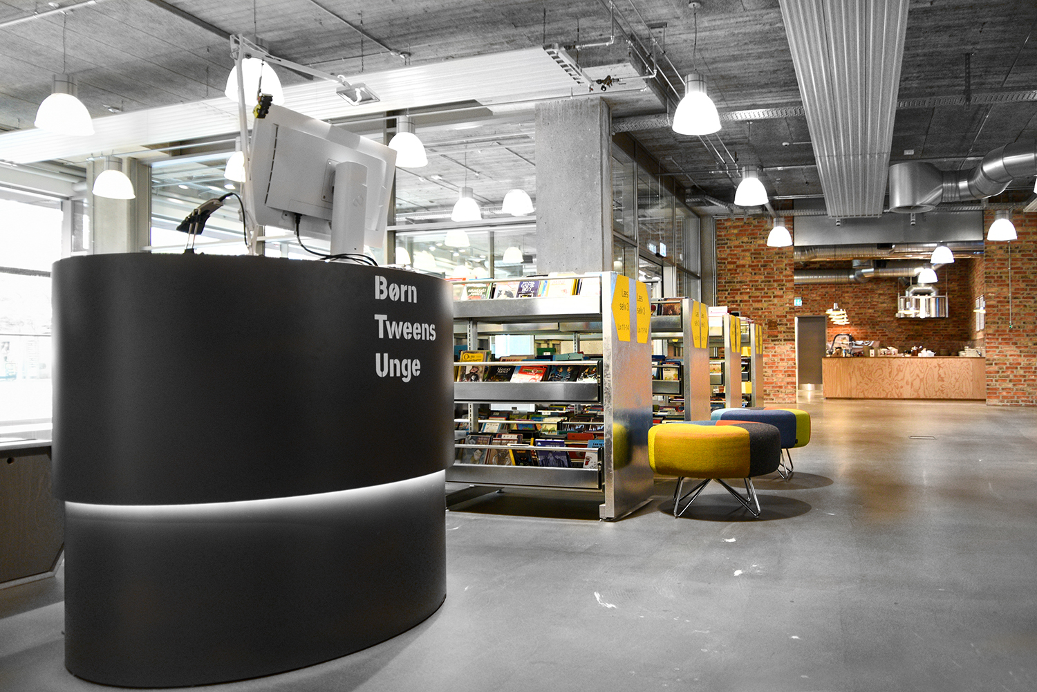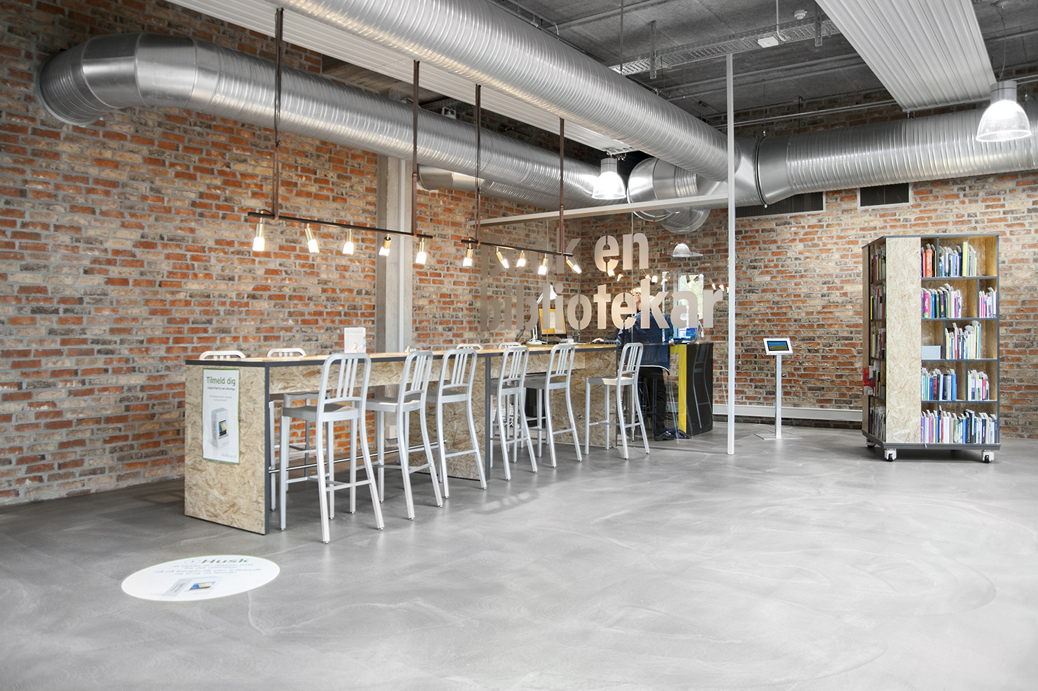 De nieuwe bibliotheek van Herning opende zijn deuren in Augustus 2014 in een super modern decor dat getransformeerd werd van een oude supermarkt naar een ruwe New Yorkse omgeving. De locatie van de bibliotheek in het midden van Herning geeft het leven in het centrum een culturele boost en richt zich op het ontwikkelingspotentieel dat ligt in het plaatsen van een moderne bibliotheek op de juiste plaats, waar de inwoners dagelijks langskomen - dicht bij de dynamiek van de stad, centraal gelegen tussen Herning station met bushalte en de vele onderwijsinstellingen.