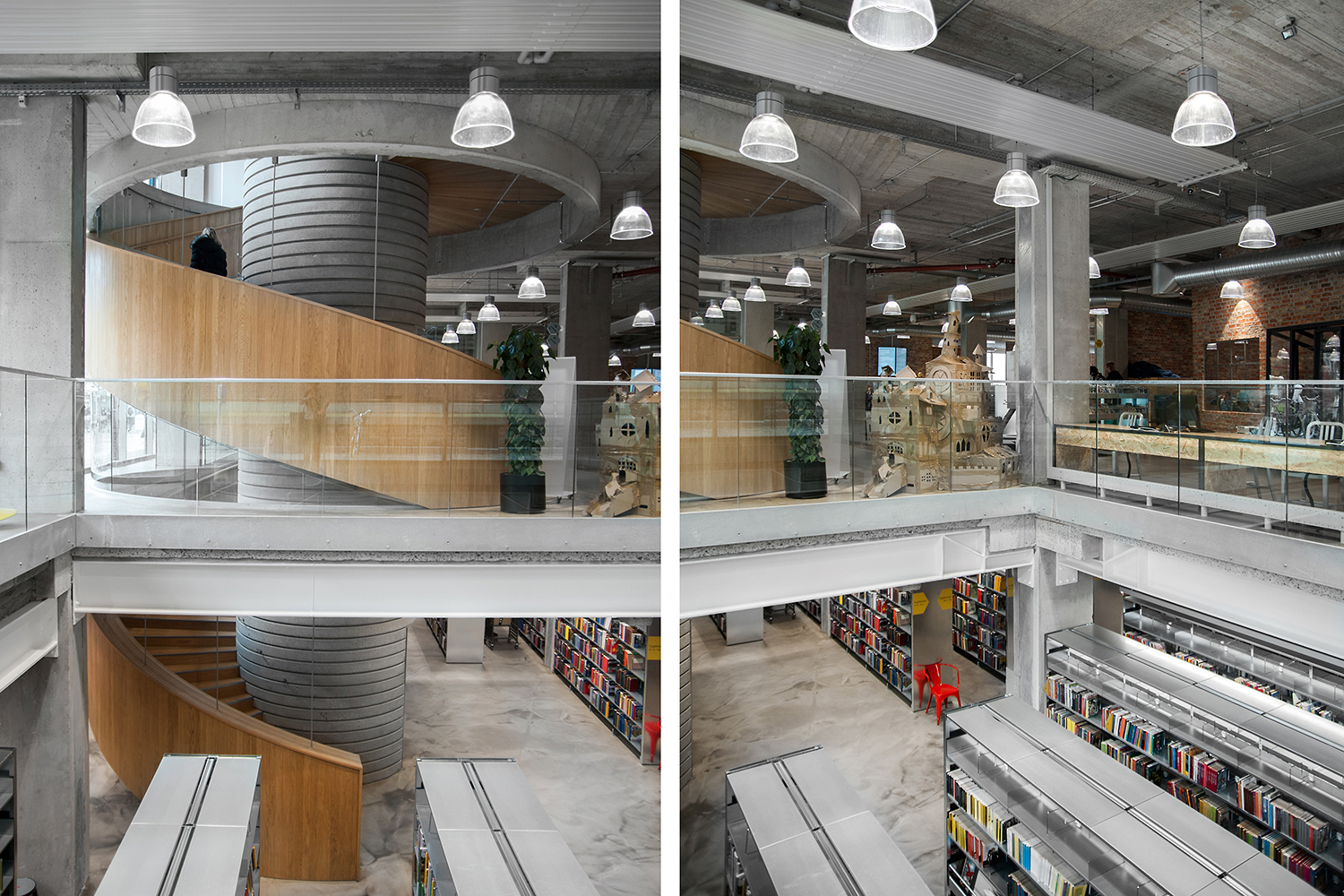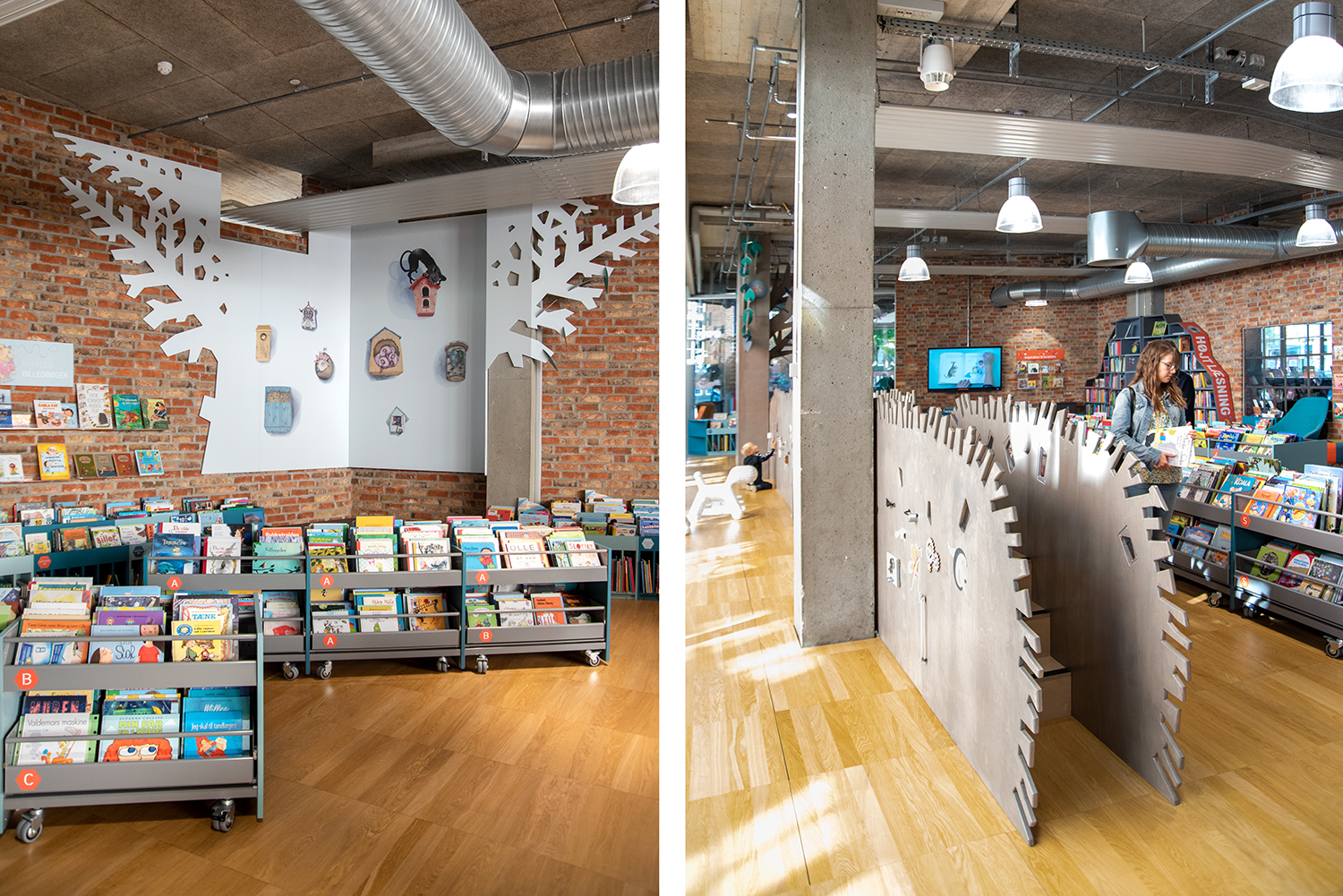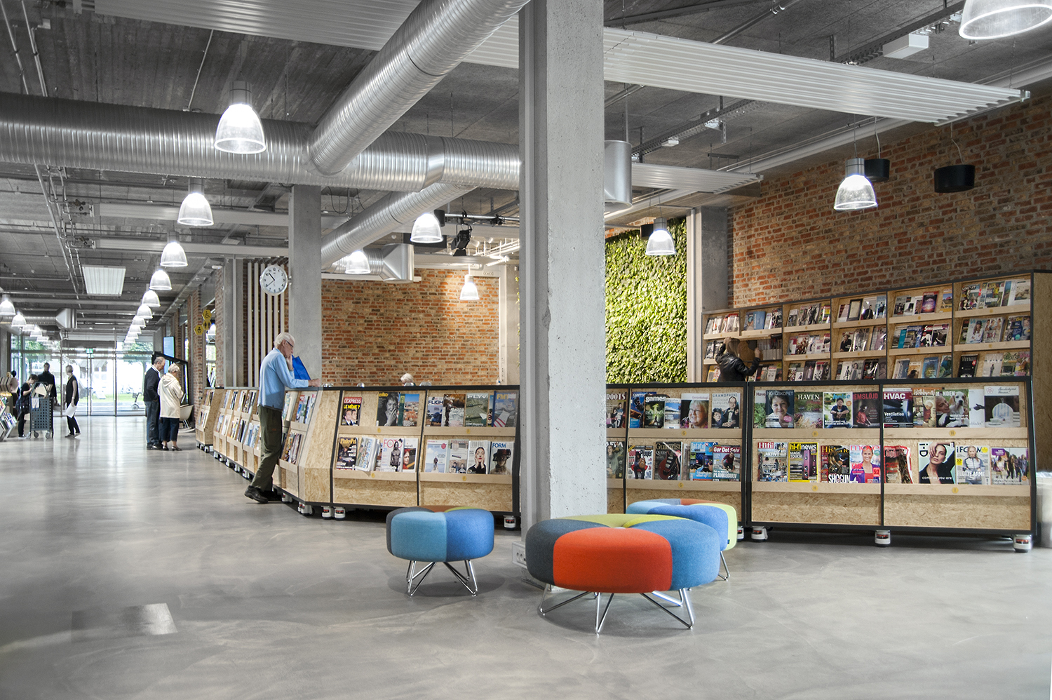 De nieuwe bibliotheek van Herning opende zijn deuren in Augustus 2014 in een super modern decor dat getransformeerd werd van een oude supermarkt naar een ruwe New Yorkse omgeving. De locatie van de bibliotheek in het midden van Herning geeft het leven in het centrum een culturele boost en richt zich op het ontwikkelingspotentieel dat ligt in het plaatsen van een moderne bibliotheek op de juiste plaats, waar de inwoners dagelijks langskomen - dicht bij de dynamiek van de stad, centraal gelegen tussen Herning station met bushalte en de vele onderwijsinstellingen.