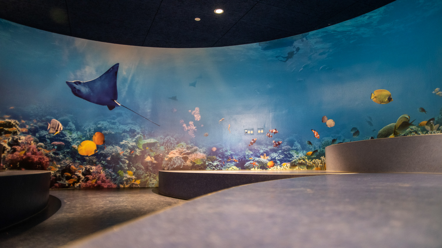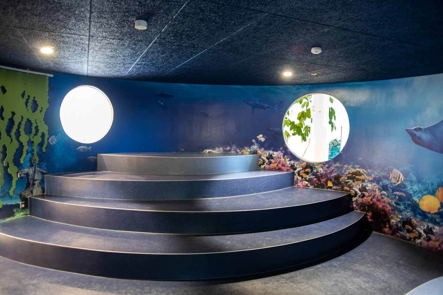 De ronde sprookjesgrot in het midden van de bibliotheek is omgetoverd tot de Oceaan, waar een grote muurfolie met een speciaal ontworpen motief en zeewiergordijn het gevoel geeft onder de zee te zijn. Tegelijkertijd kunnen de kinderen op zeepaardjes jagen of wedijveren om als eerste de jonge anemoon te vinden.