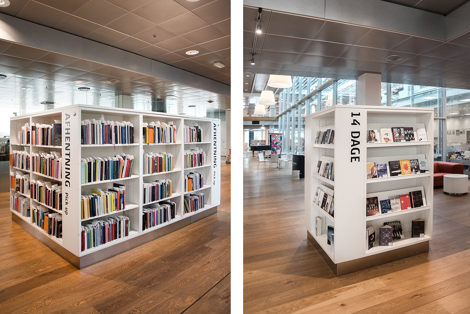 Producten die in de Openbare bibliotheek Kolding, Denemarken gebruikt worden