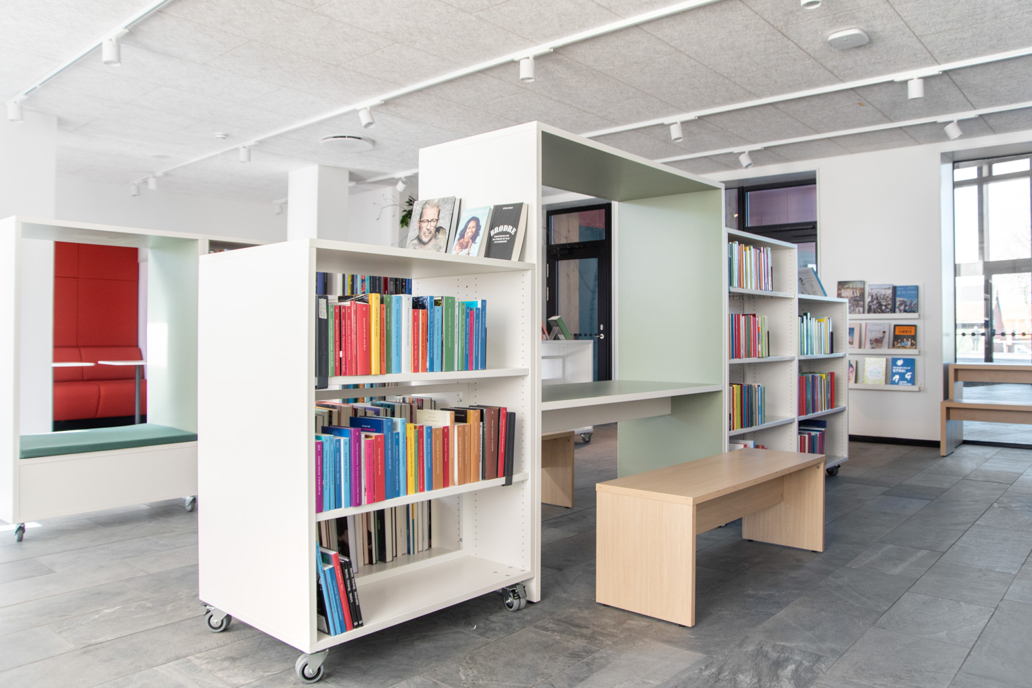Voor de indeling en interieurvormgeving van de multifunctionele bibliotheek staken het schoolpersoneel en de medewerkers van de openbare bibliotheek van Lyngby de koppen bij elkaar.