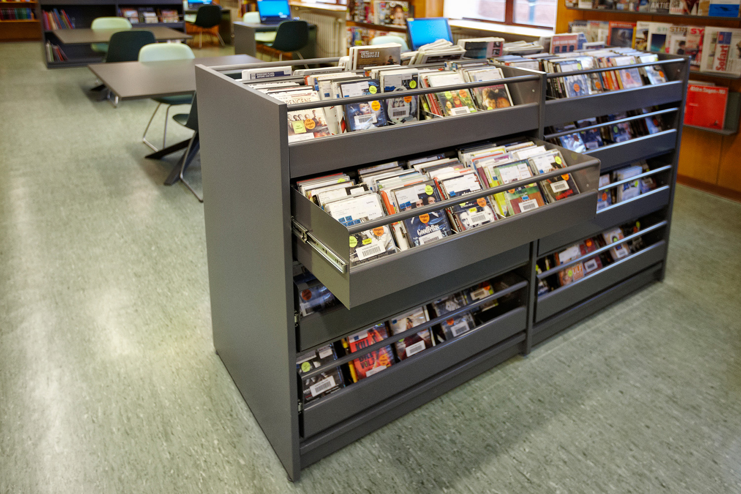 Producten die in de Openbare bibliotheek Nyborg, Denemarken gebruikt worden