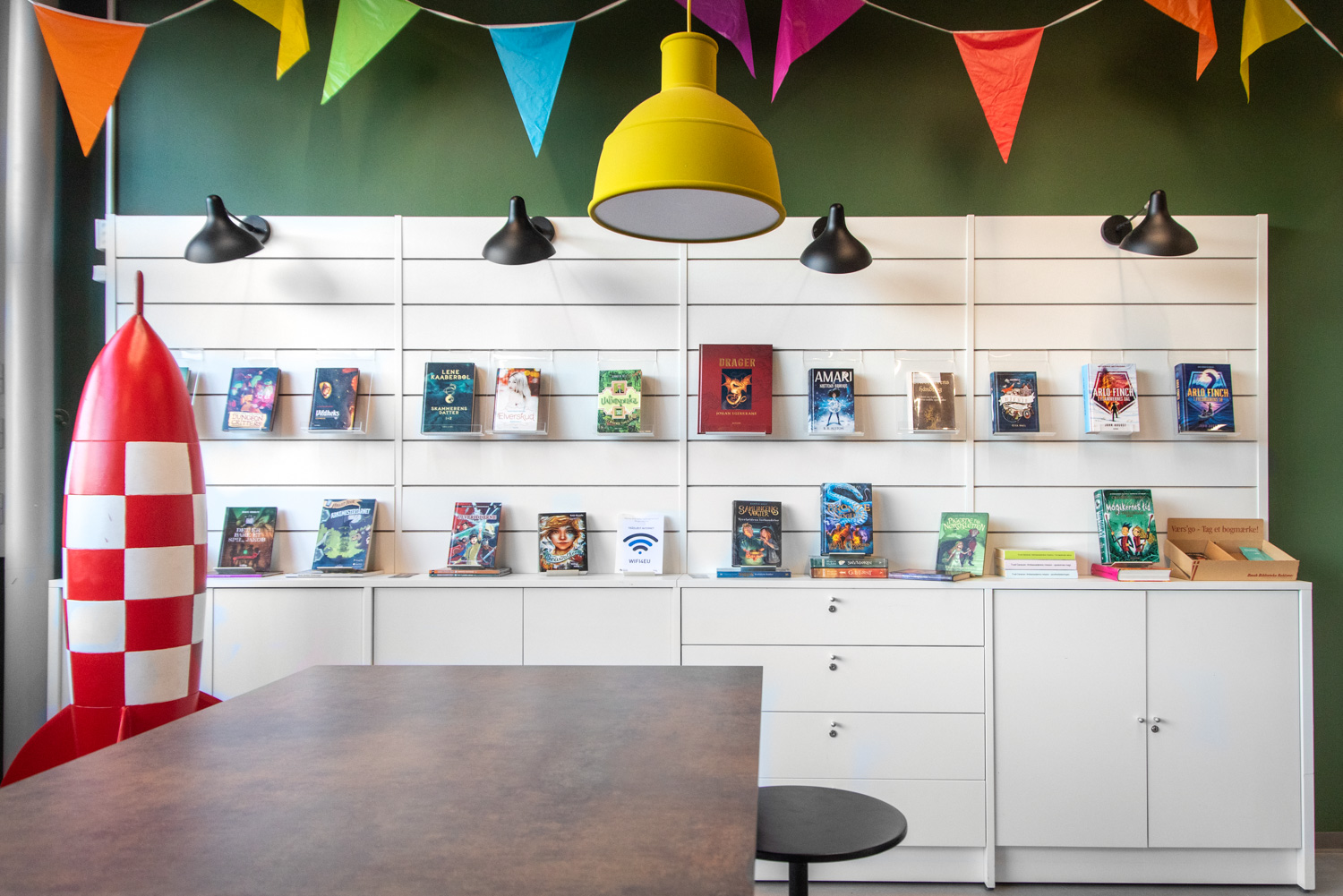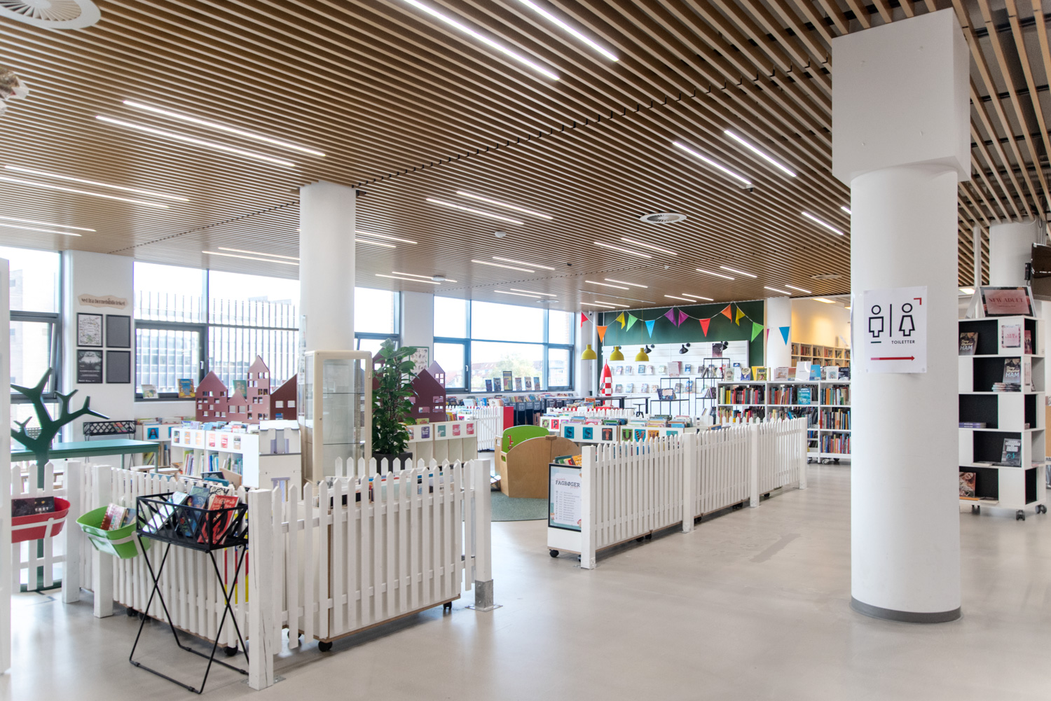 Producten die in de Openbare bibliotheek Odense, Denemarken gebruikt worden