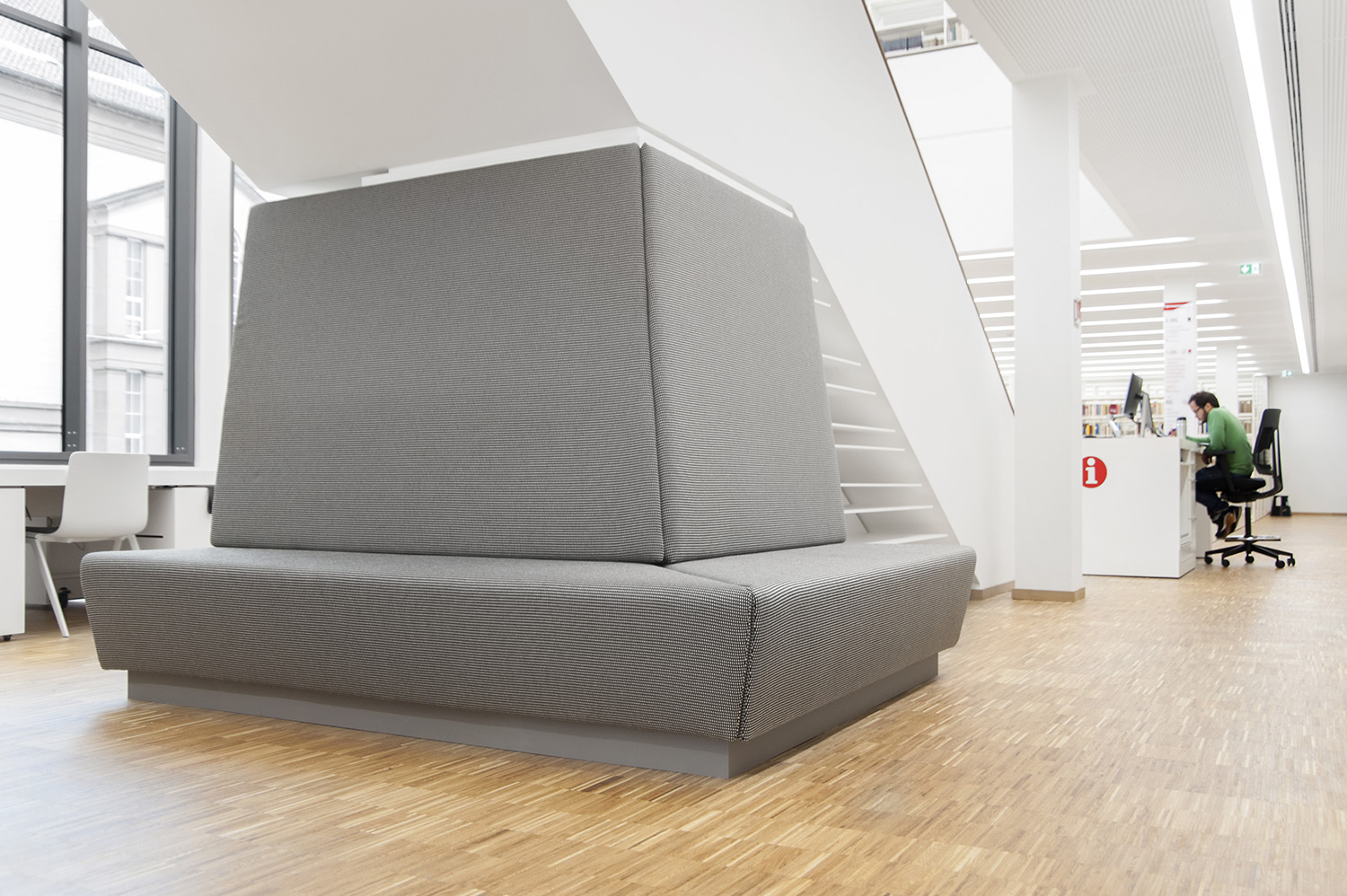 Er is een oppervlakte van 1.000 m² multifunctionele bibliotheekruimte beschikbaar en dat op drie niveaus, een twee verdiepen tellende leeszaal, kantoor- en administratieve ruimtes, etc.