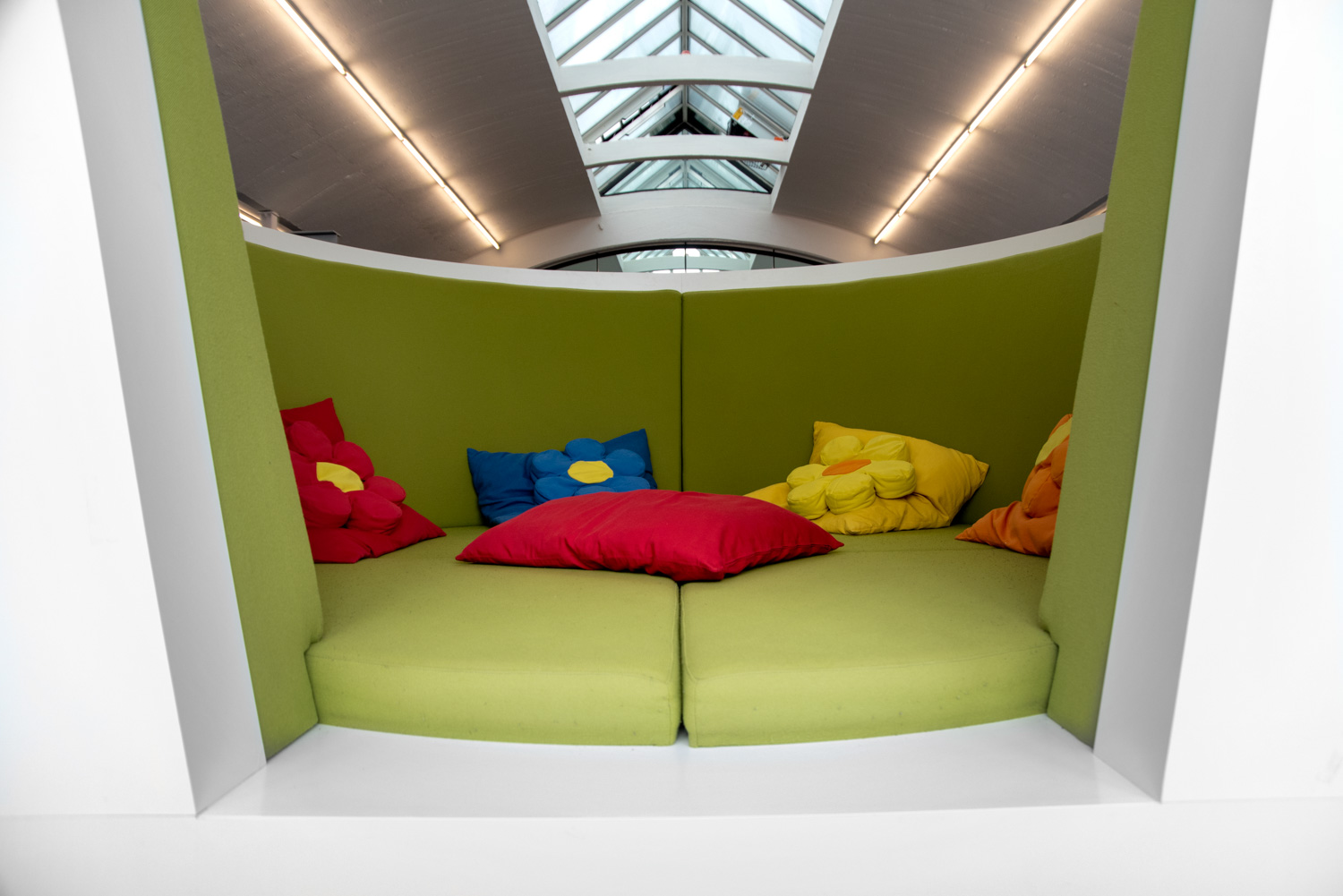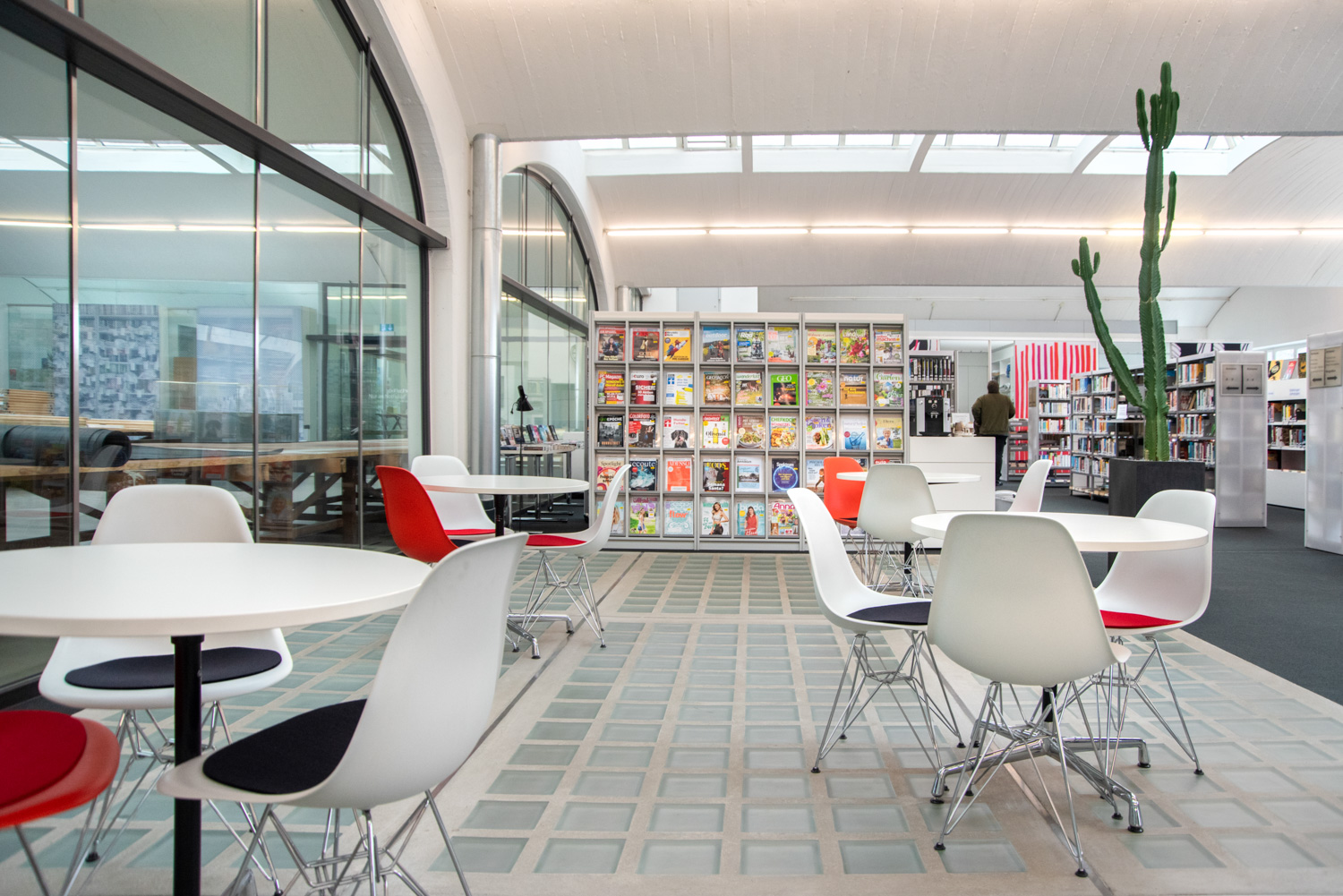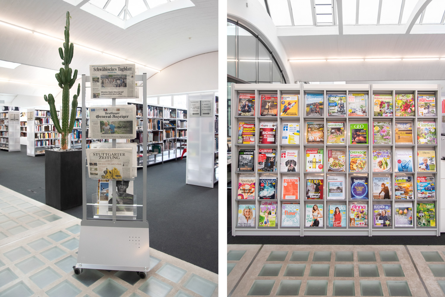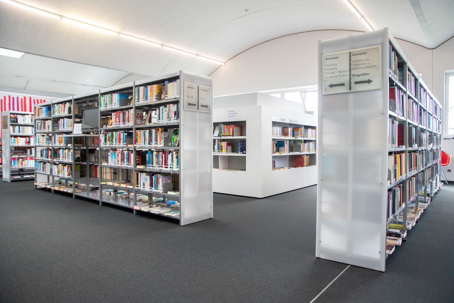 Dat hebben de architecten in de bib van Mössingen goed begrepen. Dankzij hun vakkundige ingrepen en oog voor detail, verwelkomt de bibliotheek de bezoekers in een lichtrijke, ruime en speelse omgeving, die aangenaam aanvoelt en ruimte schept voor ontmoeting.