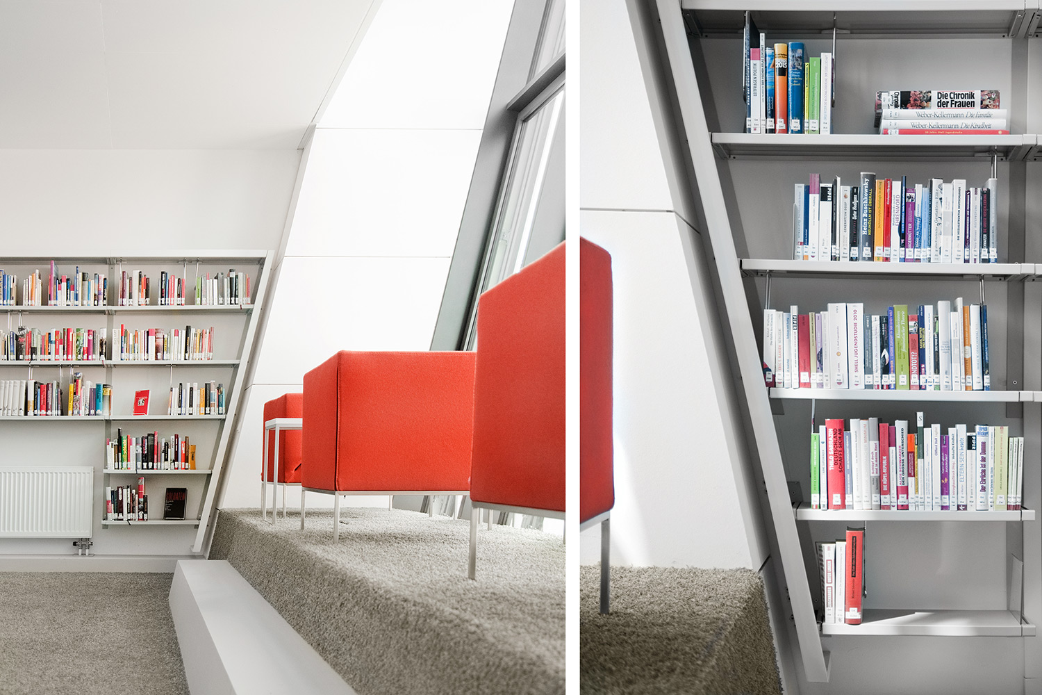 Een centrale ligging, een maritiem karakter en een grootte die doet denken aan een Atlantisch cruise schip. Kort samengevat, dat is de nieuwe, unieke bibliotheek van Weiterstadt die je moeilijk kan missen. De architectuur van het gebouw trekt de aandacht en de burgers van Weiterstadt vinden er naast hun publieke diensten ook nog twee cafés terug.