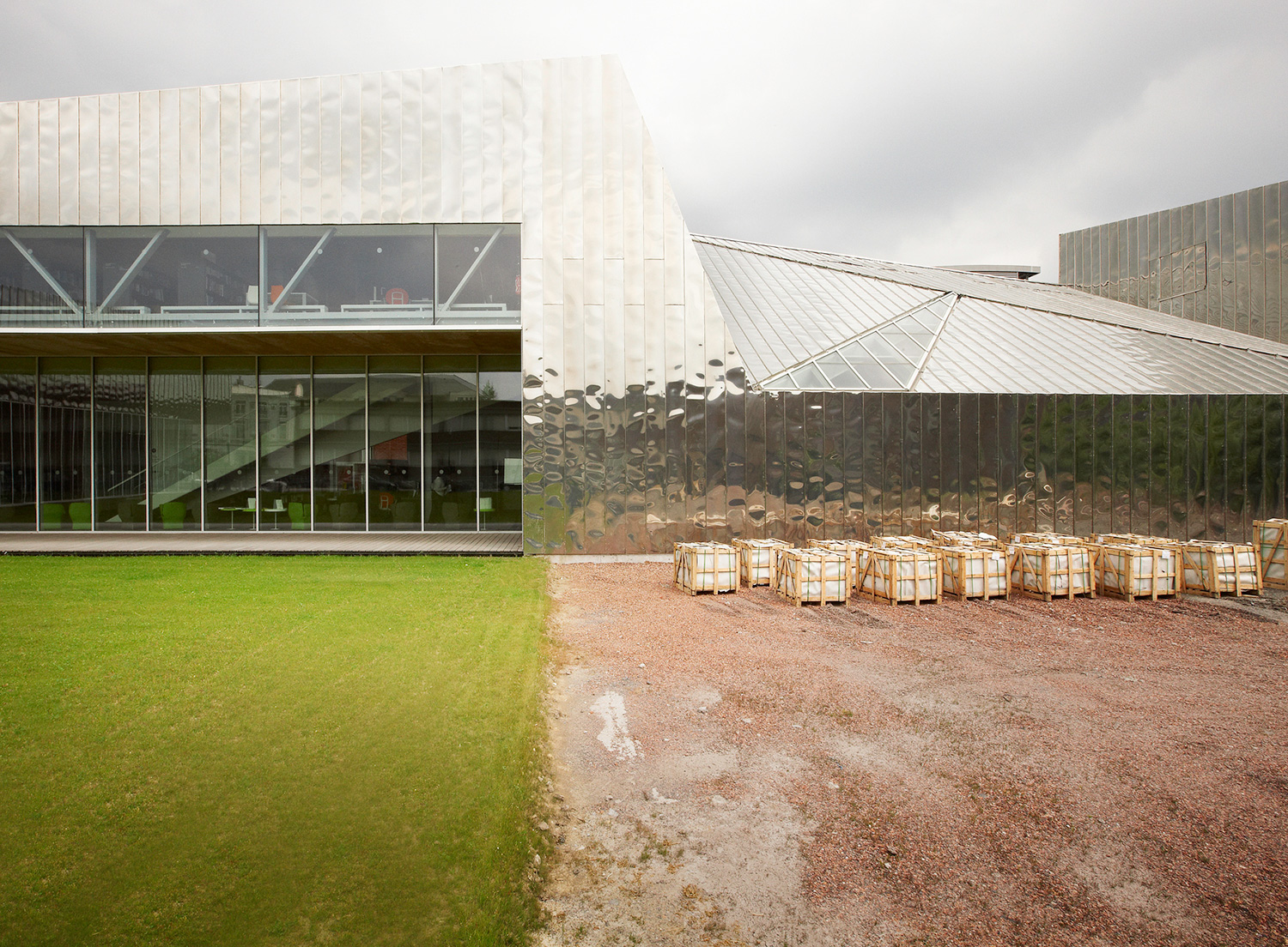 Het dak, gemaakt van licht-gegloeid roestvrij staal heeft de vorm van een horizontale, gegolfde envelop, die vloeiend overloopt met verschillende hoogtes in de omgeving. Volgens de architecten, is de architectonische stijl een vorm van vertelling en expressionisme geschikt voor formele interpretatie zonder onderworpen te zijn aan al te theoretische discipline.