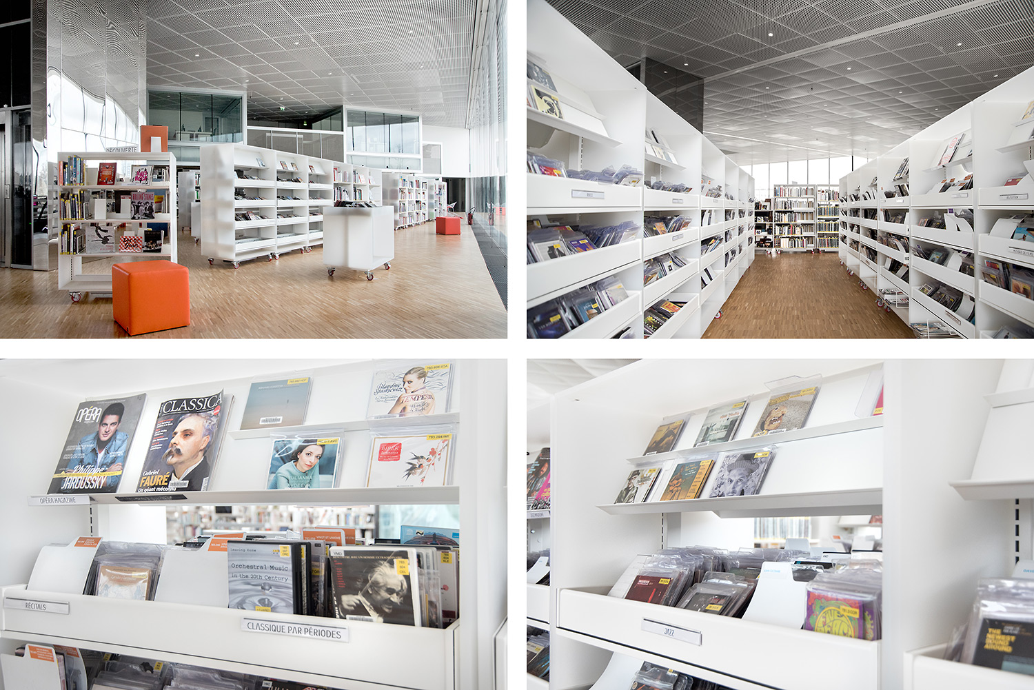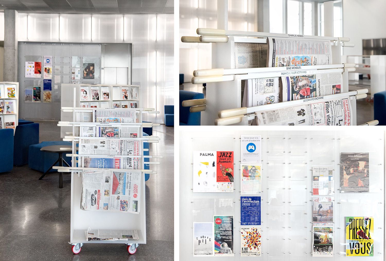 Producten die in de Openbare bibliotheek Alexis de Tocqueville, Caen-la-Mer, Frankrijk gebruikt worden
