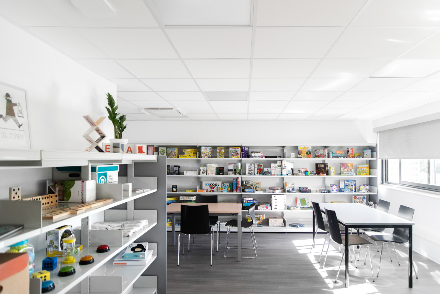 In een leegstaand appartement bij het hoofdgebouw werd een ruimte ingericht voor gezelschapspellen. Zo kon het aanbod informatiebronnen, items en opleidingen in de mediatheek alvast worden uitgebreid.