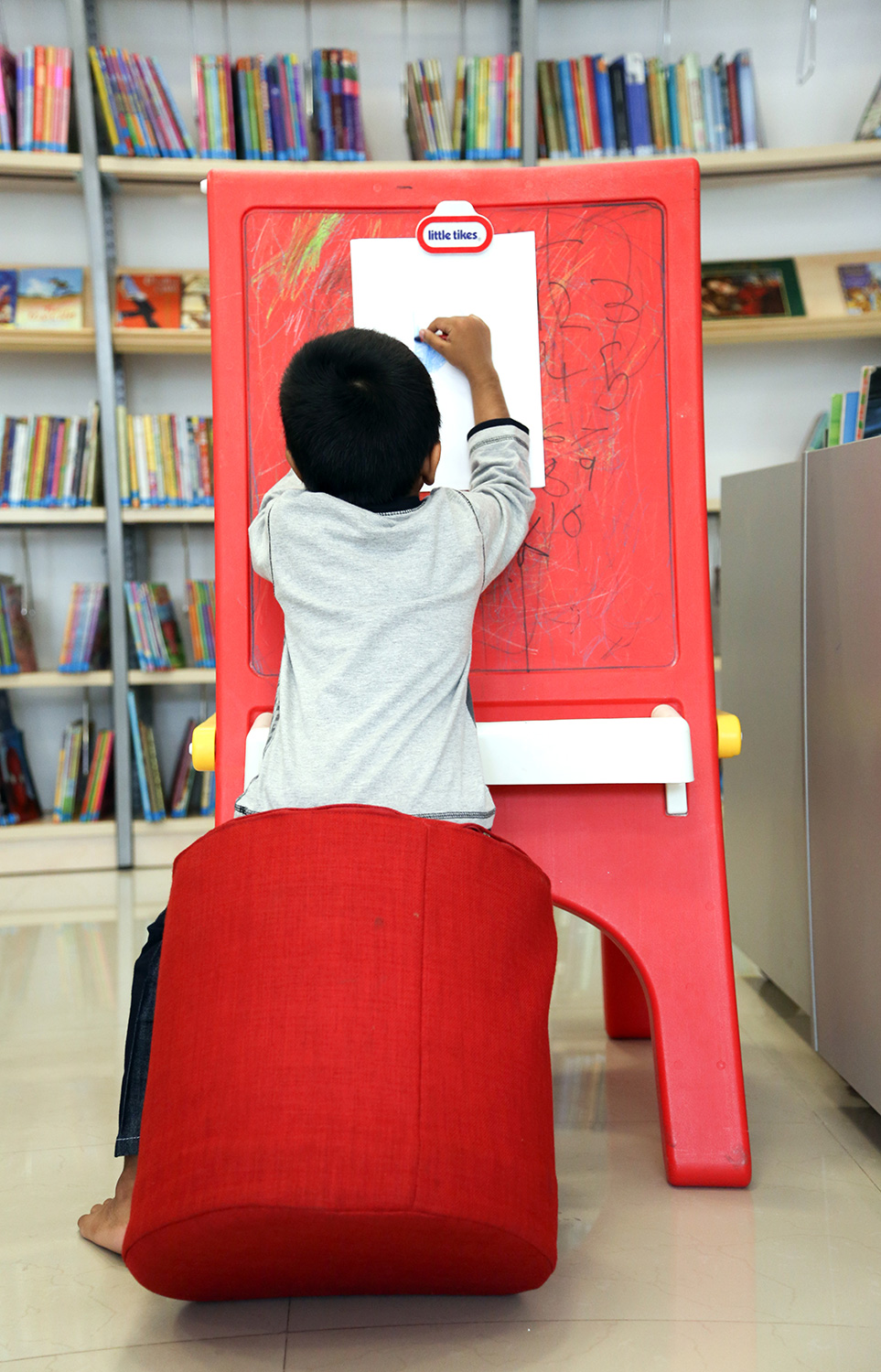 De bevordering van de leesvaardigheid is het belangrijkste voor de bibliotheek en het interieur is gepland ter ondersteuning en verbetering van de interactie tussen kinderen, boeken en ervaren personeel. Met spannende meubelen zoals de Reading Rocket, Reading Plane en verschillende prentenboekenbakken het interieur is duidelijk ontworpen voor deze doelgroep. Rekken, computers, stoelen en tafels werden naadloos en met de perfecte afwerking geïnstalleerd.